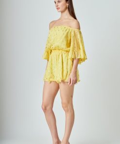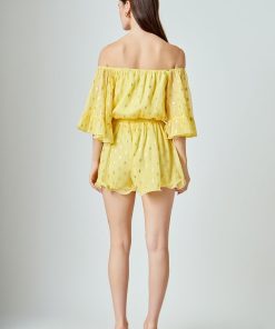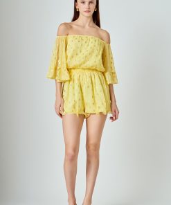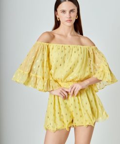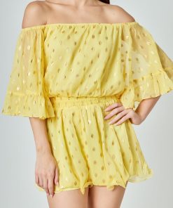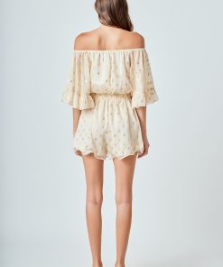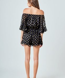 This romper is an effortlessly chic choice for any warm-weather occasion. The allover foil dot print lends a touch of whimsy, while the cinched waist and flounce hem shorts create a flattering silhouette. Dress it up with strappy heels and statement earrings or keep it casual with flat sandals and a jean jacket.