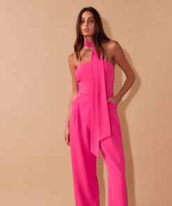 Add some style to your wardrobe with this stunning Strapless Jumpsuit. Featuring a Front neck bow tie and Side pockets this Jumpsuit is perfect for looking both fabulous and comfortable. Back welt pockets and Hidden side zipper close add the perfect finishing touches. With its modern design it is sure to turn heads and make a statement. Shop this Front Tie Strapless Jumpsuit today!