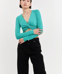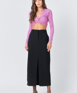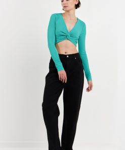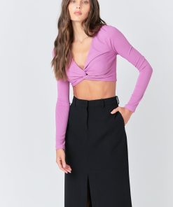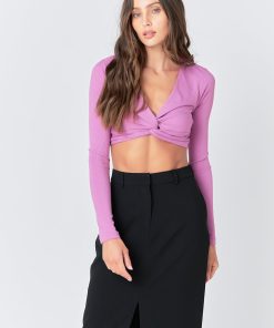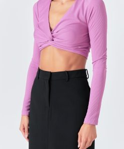 This top is the perfect mix of fun and flirty. The front twist cropped long-sleeve top can be dressed up or down, making it perfect for any occasion. The fitted, long sleeve, the crop-length top is made of a soft knit material that is sure to keep you comfortable all day long.
