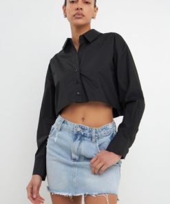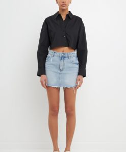 A little bit of edge goes a long way. We love a good skirt and this washed denim one is sure to make a statement. With a high-low hem, it’s perfect for showing off your favorite pair of shoes. The 5 pocket style and button closure zipper give it an added touch of detail. Dress it up or down, this versatile skirt will take you from day to night in style.