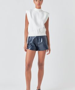 Introducing our stylish High-Waisted Faux Leather Shorts. The high waist design with an elastic waistband in the back and a soft, lined interior provides a figure-flattering fit that looks great. Our shorts are crafted from a shiny faux leather fabric, for a sleek and contemporary look. So, if you’re looking for a stylish and versatile piece perfect for any season, look no further!