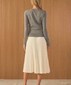 Introducing our must-have Knit Midi Skirt that will elevate your wardrobe. With its perfect midi length, you’ll stay on-trend and comfortable all day long. The soft knit fabric hugs your curves in all the right places, while the pleated design adds a touch of sophistication. Featuring a back zipper for easy wear, this skirt is perfect for any occasion. Its versatile style and exceptional quality make it a wardrobe staple. Shop now and effortlessly elevate your look with this chic Knit Midi Skirt.