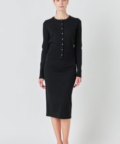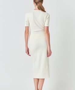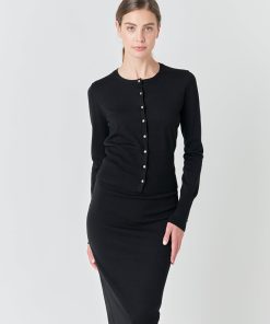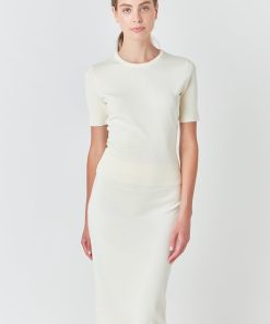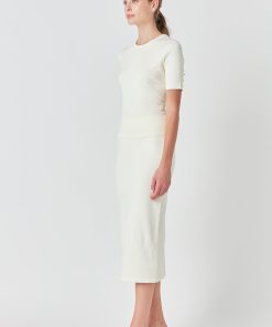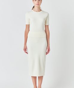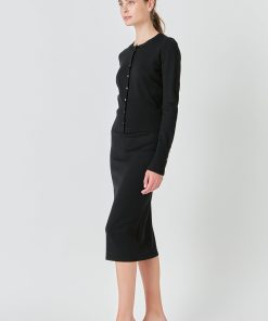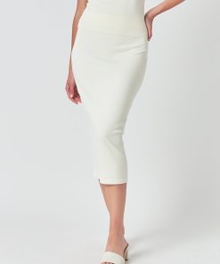 This elegant Knit Midi Skirt is crafted from a solid knit fabric with a fitted design. It’s midi length and features ribbed detailing on the bottom. This sophisticated skirt is sure to become a wardrobe staple. Lightweight and comfortable it’s a must-have for occasions where you need to look your best. With its figure-flattering fit this knit midi skirt is perfect for dressing up or dressing down.