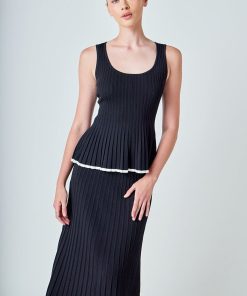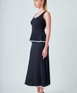 Elevate your skirt game with our Knit Pleated Tip Detail Midi Skirt! Crafted with a soft and stretchy knit fabric, this French-inspired midi skirt is designed for ultimate comfort and style. The contrast tip adds a touch of chic sophistication, while the pleated detail creates a flattering silhouette. Perfect for any occasion, this skirt is versatile enough to be dressed up or down. Don’t worry about the maintenance either – hand wash it cold and it’ll be good as new. So go ahead, add this must-have skirt to your wardrobe and make a statement!