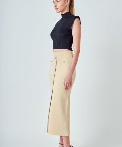 Elevate your skirt game with our knitted midi skirt. Made from soft and stretchy knit fabric, this skirt offers ultimate comfort and style. The front pockets add functionality while the A-line fit flatters your figure. With its midi length, this skirt is versatile for all occasions. Perfect for dressing up or down, this skirt is a must-have in your closet. The perfect combination of comfort and style, our Knit Pocketed Midi Skirt is the ultimate go-to piece for any fashion-forward individual. Upgrade your wardrobe with this on-trend skirt today.
