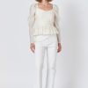 Warm and versatile, this top is knit from a light and airy ribbed fabric that’s perfect for layering. The square neckline and puff sleeves are just the right amount of feminine to take you from day to day. Pair with your favorite jeans and boots or a skirt for a more feminine look.