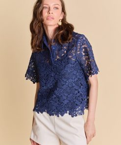 Endless Rose Women’s Lace Collared Top | Ivory|navy