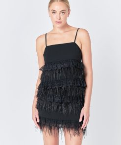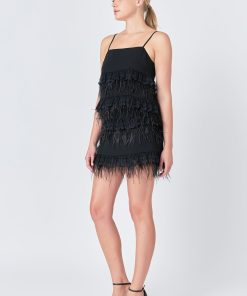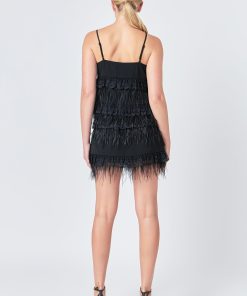Endless Rose Women’s Lace & Feather Trim Tank Top | Black