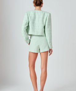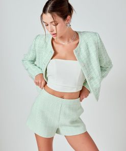 Introducing the ultimate combination of style and comfort – our Lemi Tweed Relaxed Shorts. Made from premium quality tweed fabric, these shorts are perfect for any occasion. The relaxed fit allows for easy movement, while the back welt pockets and side seam pockets add a touch of functionality. With its trendy design and meticulous craftsmanship, our tweed shorts are a must-have in every wardrobe. So why wait? Grab a pair of these versatile shorts today and elevate your style game. Perfect for any season and suitable for both casual and formal settings. Shop now!