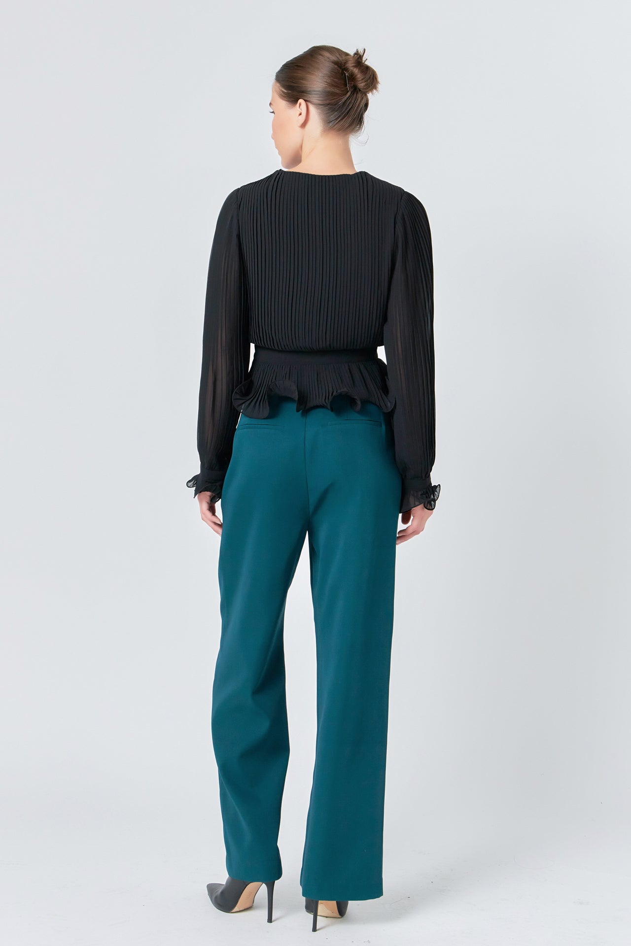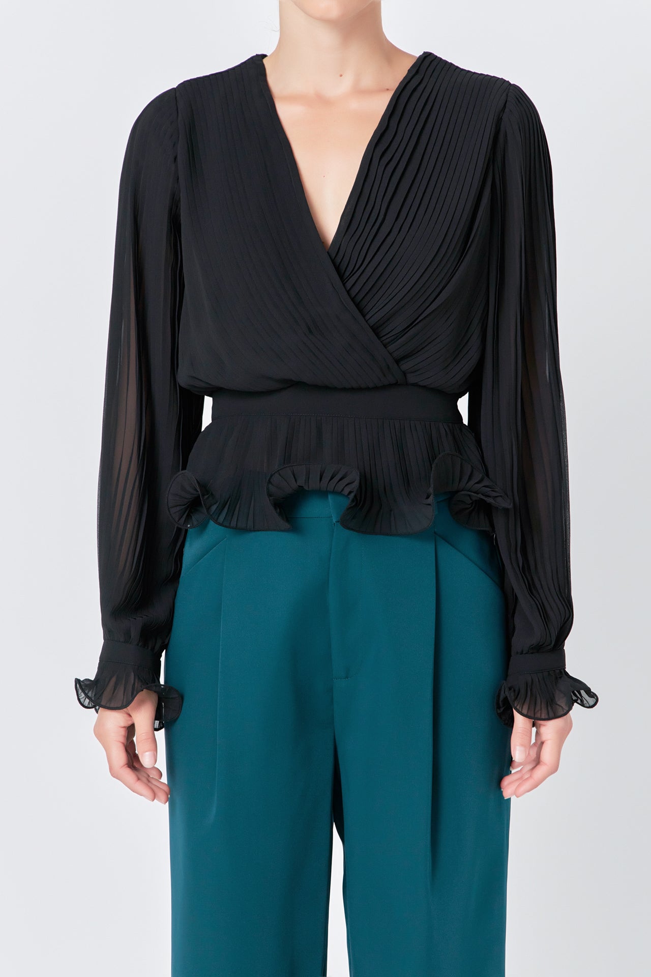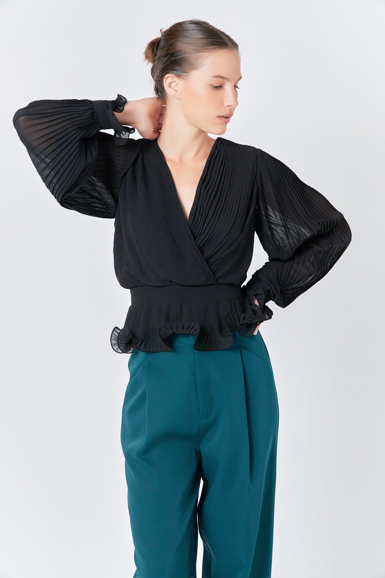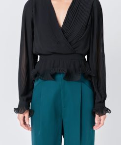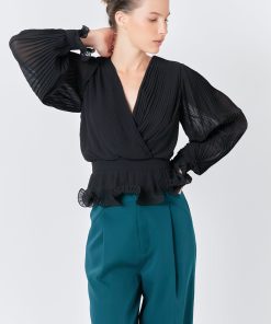This beautiful top lettuce hems and pleated fabric that add an elevated taste to any outfit. Perfect for both daytime and nighttime, pair this top with slacks for the office and then slip into a mini skirt for a fashionable night out.