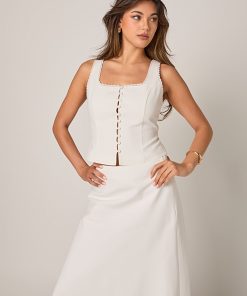 Model 2 WHITE: Height 5’8″ / Bust 32″ / Waist 24″ / Hips 36.5″