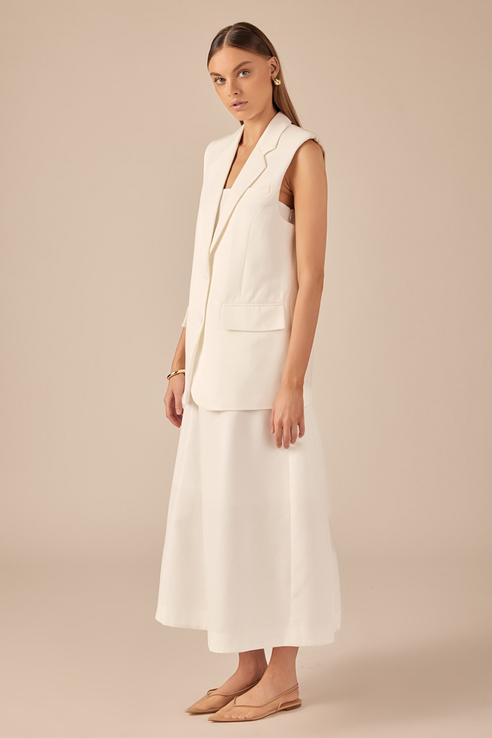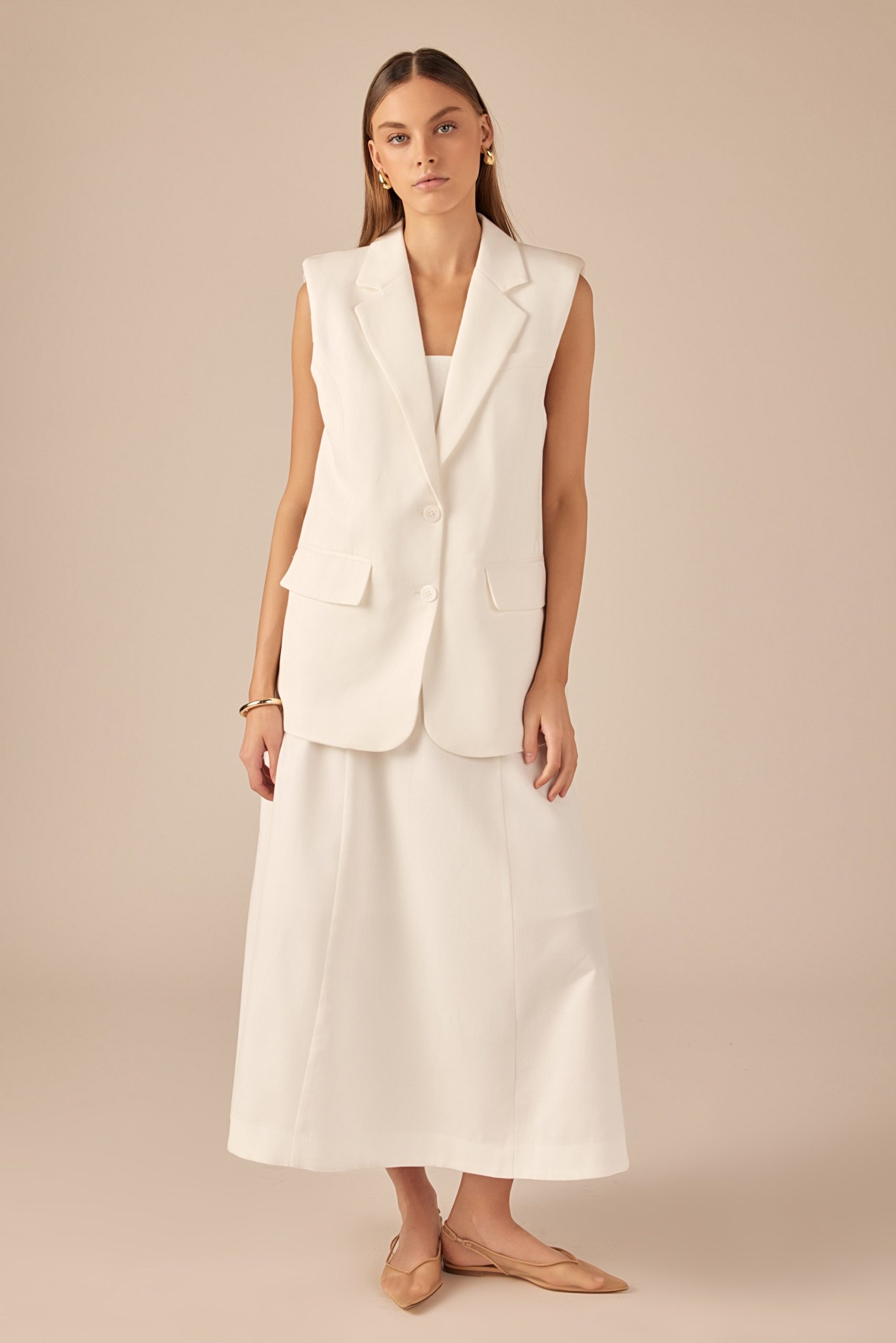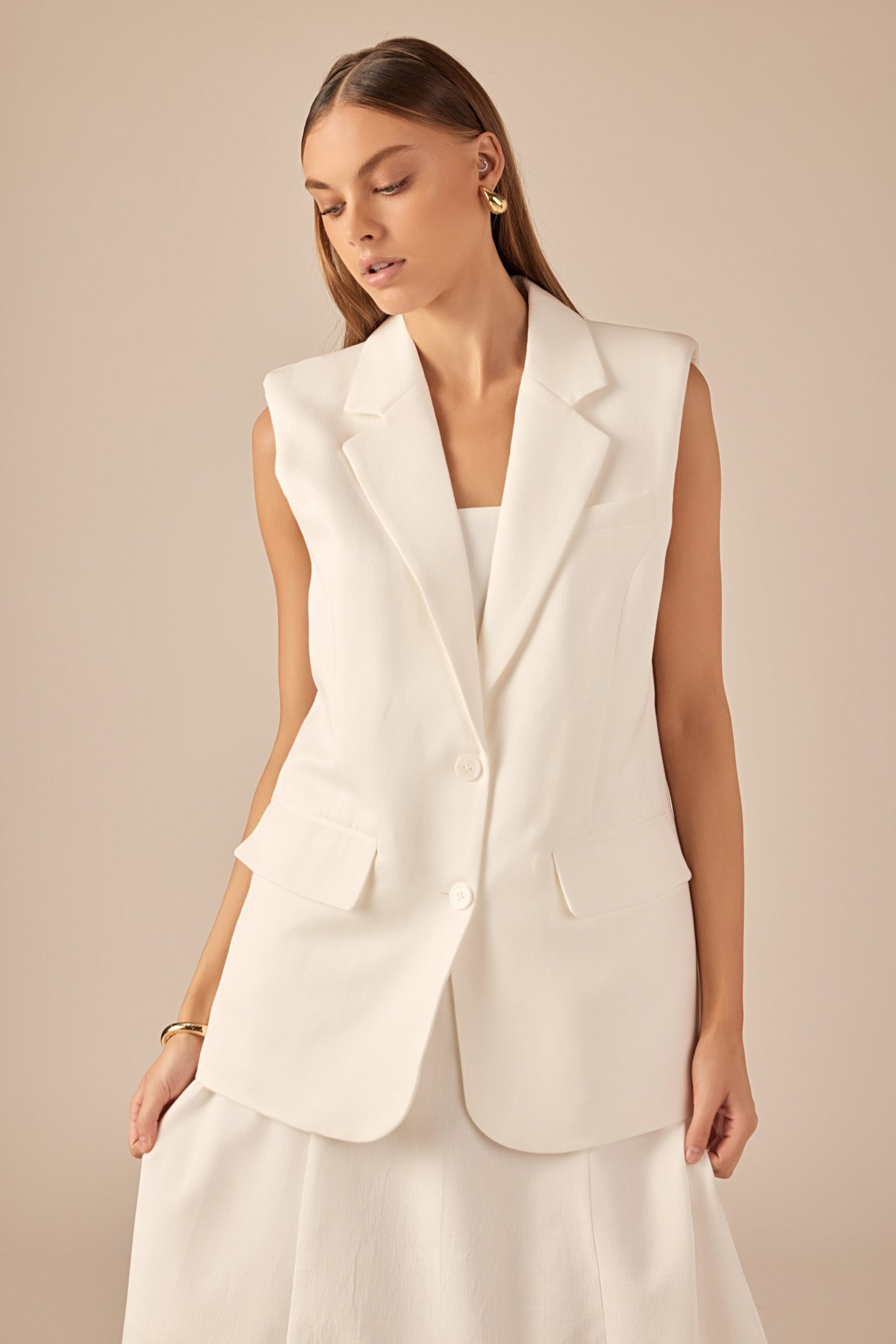 Introducing our Linen Oversize Vest Blazer the must-have piece for effortless style. Made from high-quality linen for a lightweight and breathable feel, this blazer features an on-trend oversize fit that flatters every body type. It’s also sleeveless, making it perfect for layering over any outfit. With a single breast closure, it’s both stylish and functional. Perfect for any occasion, from the office to a night out, this blazer is a versatile addition to your wardrobe. Shop now and elevate your look with this modern take on a classic blazer.