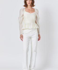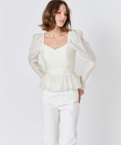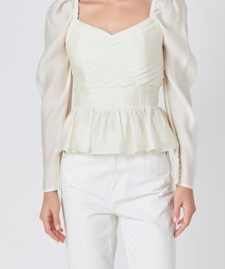 Endless Rose Women’s Long-sleeve Peplum Top | Cream