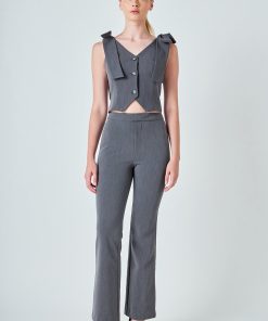 Introducing our Mid Rise Fitted Trousers, designed for a sleek and modern look. Sitting comfortably on the waist, these full-length trousers create a flattering silhouette with a subtle flare at the hem. The front zipper closure adds a polished touch, making them perfect for pairing with everything from tailored blouses to casual knits. Whether you’re dressing for the office or a night out, these versatile trousers deliver effortless style and sophistication. Perfect for both casual and formal occasions, these pants are a fashion staple.