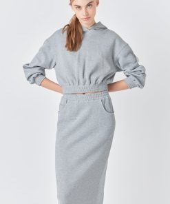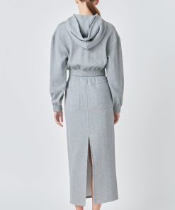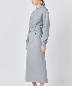 Endless Rose Women’s Mid-waisted French Terry Maxi Skirt | Heather Grey