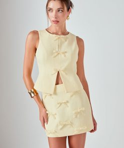 Add a touch of feminine charm to your wardrobe with our Mila Bow Trim Embellished Mini Skirt. Featuring delicate bow trims, this skort offers a unique and playful twist on a classic silhouette. The straight fit and mini length create a flattering and versatile piece that can transition seamlessly from day to night. Complete with a comfy lining, this skirt is perfect for any occasion. Elevate your style game and stand out from the crowd with our Mila Bow Trim Embellished Mini Skirt. Shop now and refresh your wardrobe with this must-have skort!