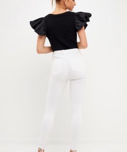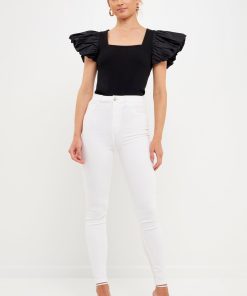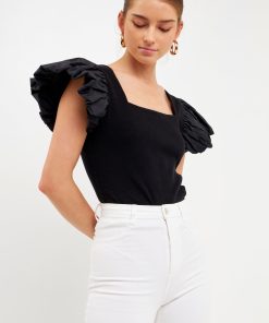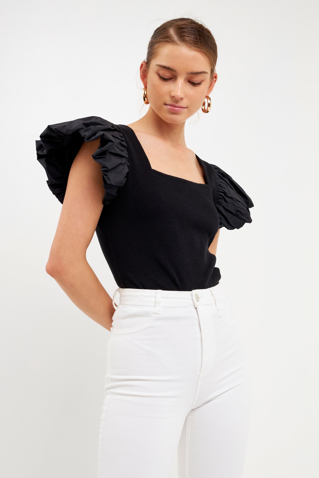 Endless Rose Women’s Mixed Media Square Neckline Knit Top | Black