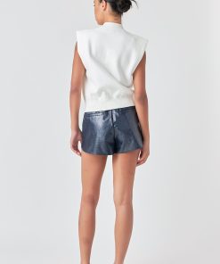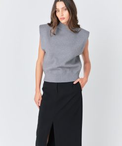 This stylish Mock Neck Sleeveless Knit Top is perfect for your everyday wardrobe. With shoulder padding and sleeveless design this top creates an attractive silhouette is simple to style and is built to last. Crafted from premium materials and with a mock neckline this knit top will be sure to turn heads. Stand out from the crowd with this beautiful Mock Neck Sleeveless Knit Top.