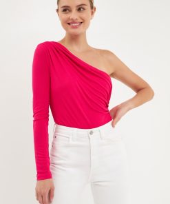 This Endless Rose Shirred One Shoulder Bodysuit is perfect for a night out or a day at the office. The one shoulder design adds a touch of elegance to this otherwise simple bodysuit. The ribbed knit fabric is figure-flattering and the baby snap buttons make it easy to get in and out of. This bodysuit can be dressed up or down to suit any occasion.