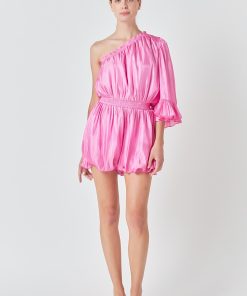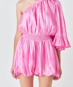 This stylish one shoulder romper is the perfect choice for a night out. Crafted from shiny fabric it features an asymmetric neckline that is ruffled for a flirty touch. The fitted bodice and elastic waistband make it comfortable to wear while the short length will show off your legs.