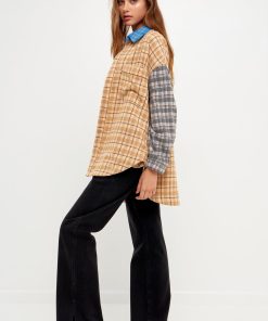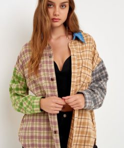 Looking for something cozy and stylish to keep you warm this winter? Check out our Oversized Plaid Colorblock Shirt! This shirt is made of soft flannel material, in a trendy check plaid pattern. It’s an oversized fit, so it’s perfect for layering over a cute turtleneck or under a cozy sweater. Plus, the front pockets are perfect for storing your phone, keys, or sunglasses. So don’t miss out on this must-have piece grab one before they’re all gone!