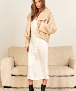 Stay warm and stylish with our must-have Oversized Collar Faux Fur Jacket. The oversized fit is both trendy and comfortable, making it perfect for any occasion. The classic collared design adds a touch of sophistication, while the hidden snap buttons closure ensures a sleek and polished look. With convenient front pockets, you’ll have plenty of space to store your essentials. This jacket is the perfect combination of fashion and functionality. A must-have for your winter wardrobe.