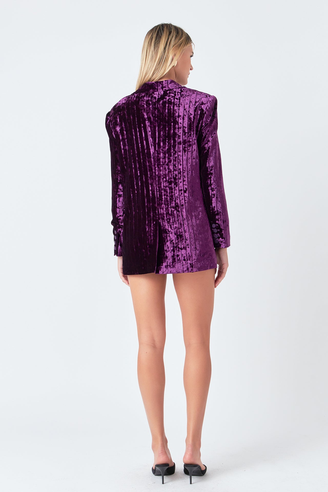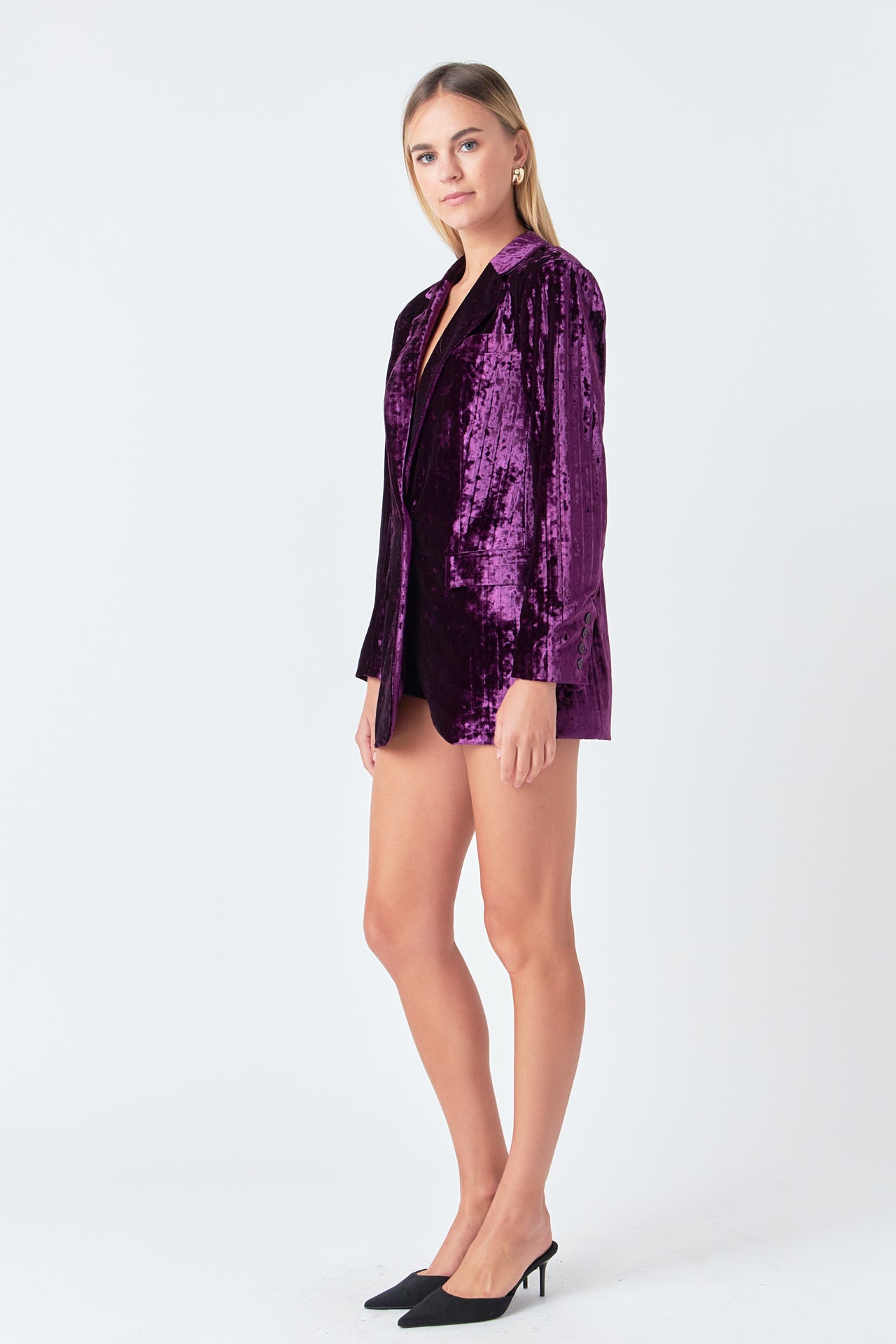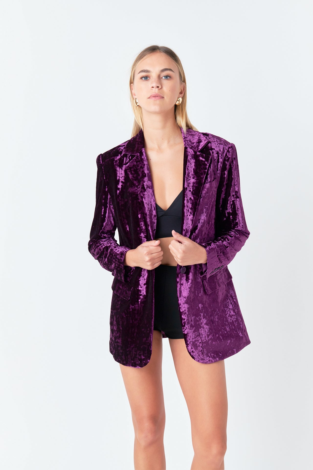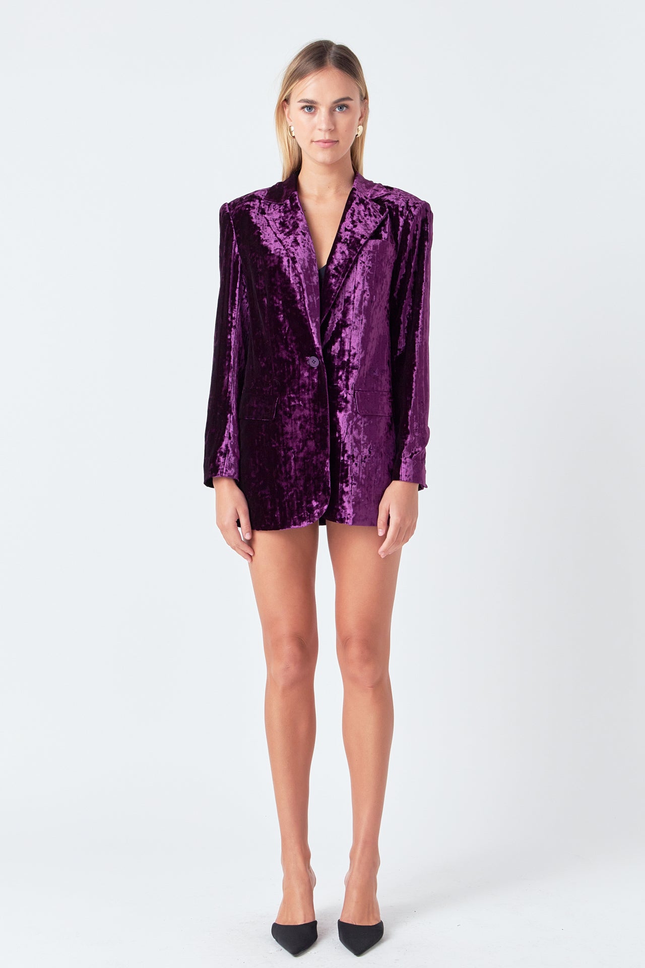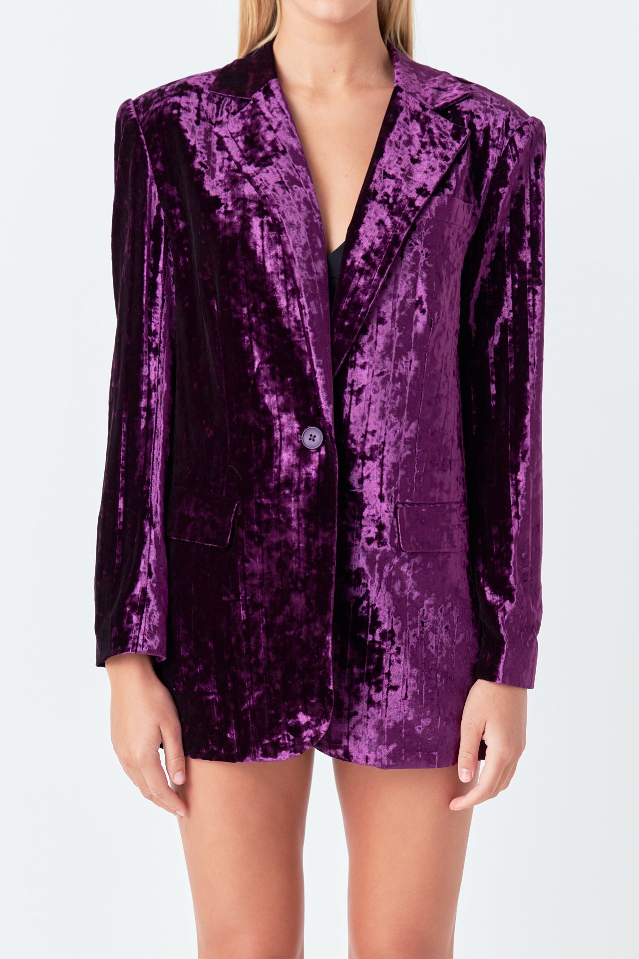 Take your blazer game to the next level with our luxurious Oversized Velvet Blazer from endless rose. With classic details like shoulder pads, jetted pockets with flaps, and a notch lapel, this blazer is perfect for your next big meeting or a hot date.