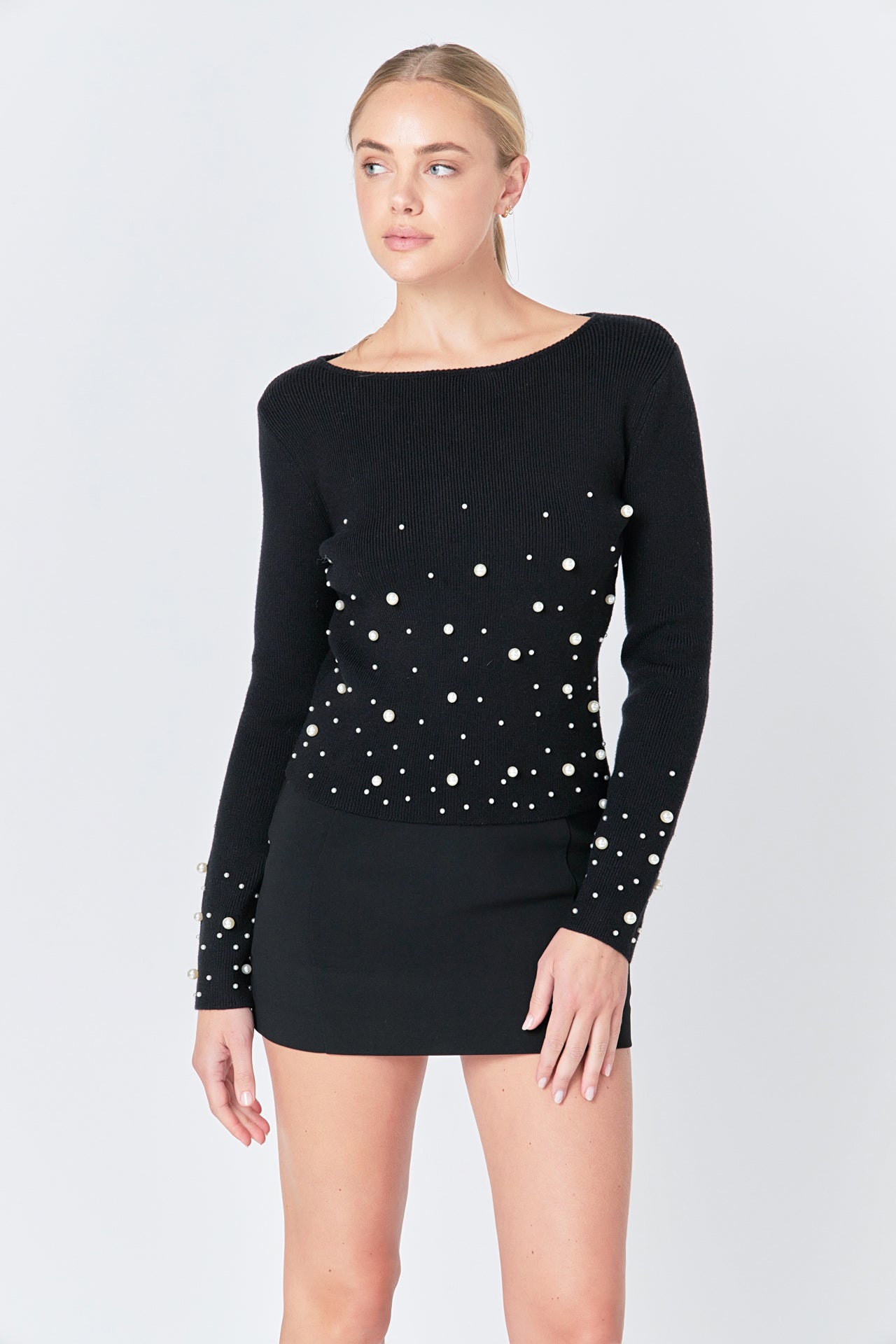 Endless Rose Women’s Pearl Embellished Sweater | Black