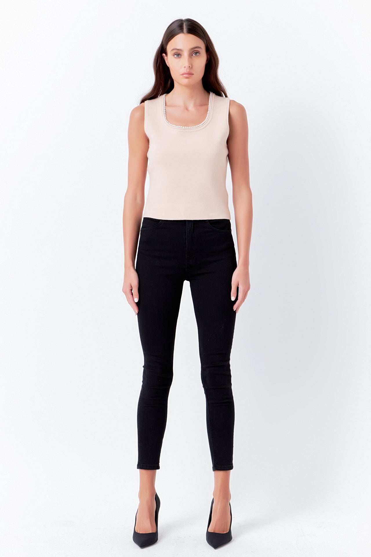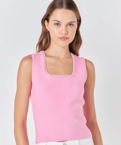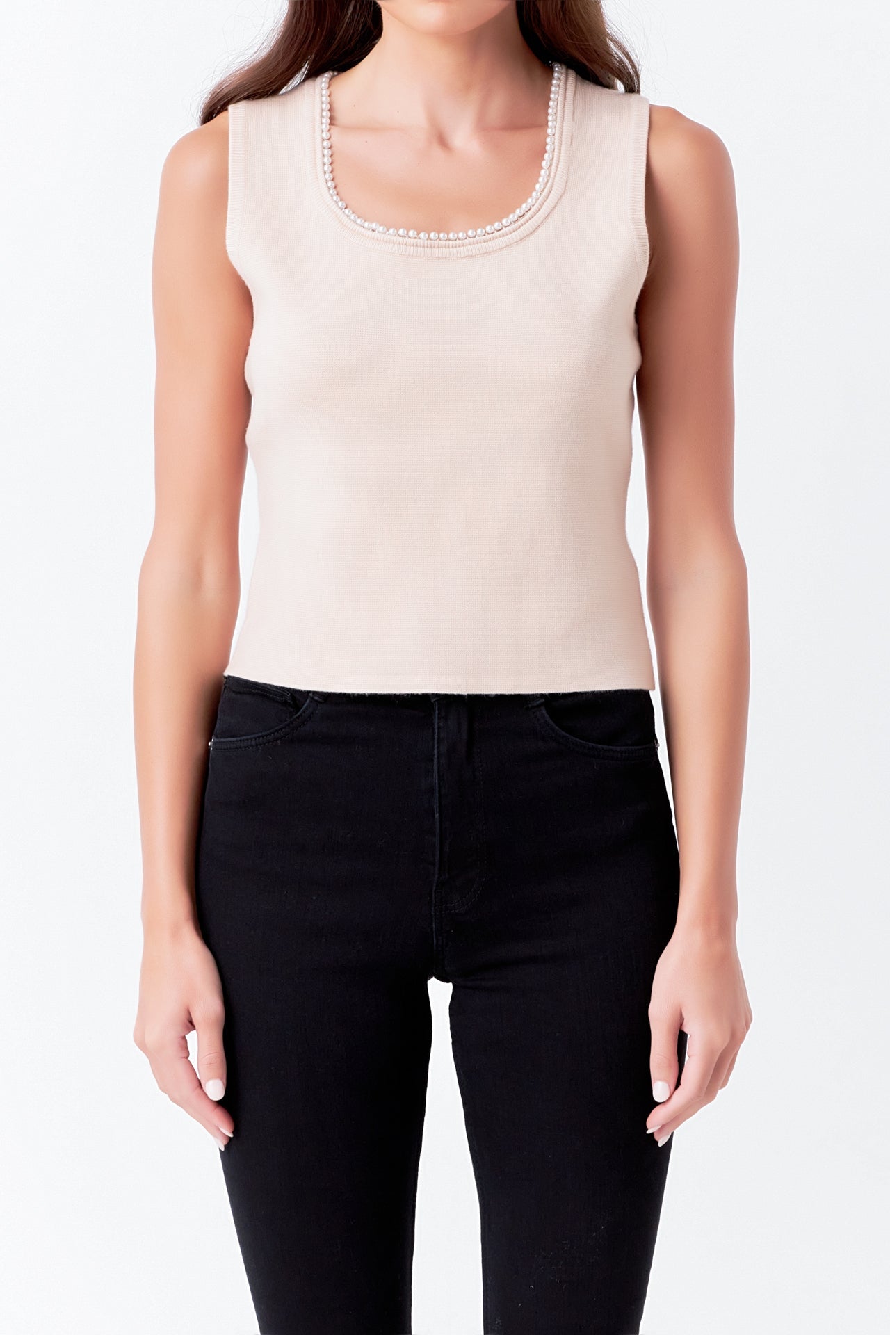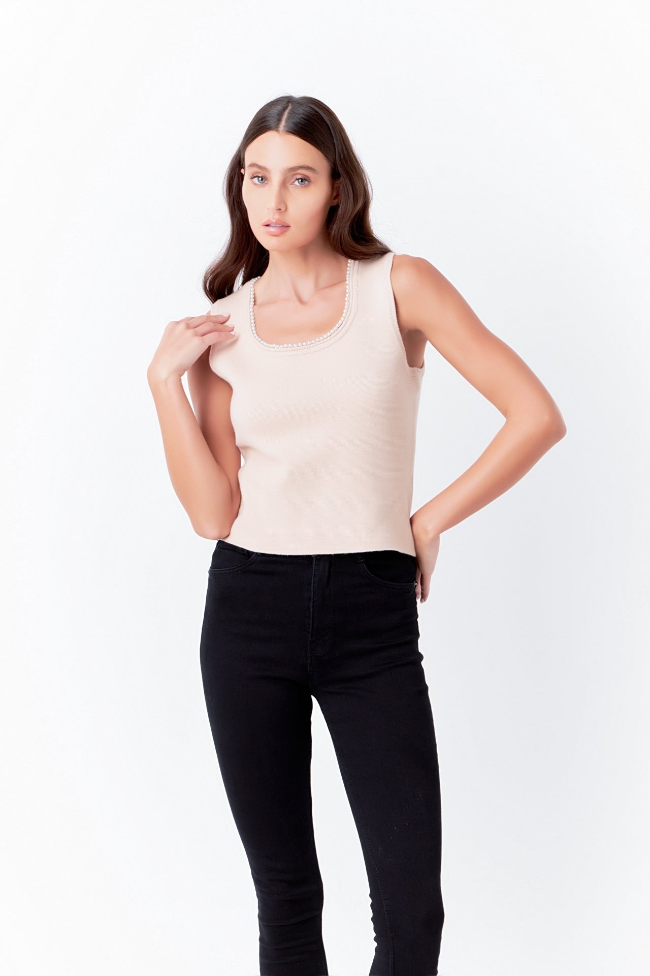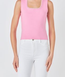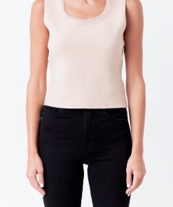 Endless Rose Women’s Pearl Trim Knit Tank Top | Butter|taupe|pink|black