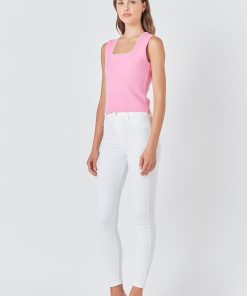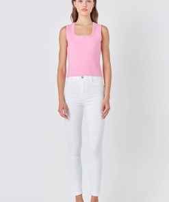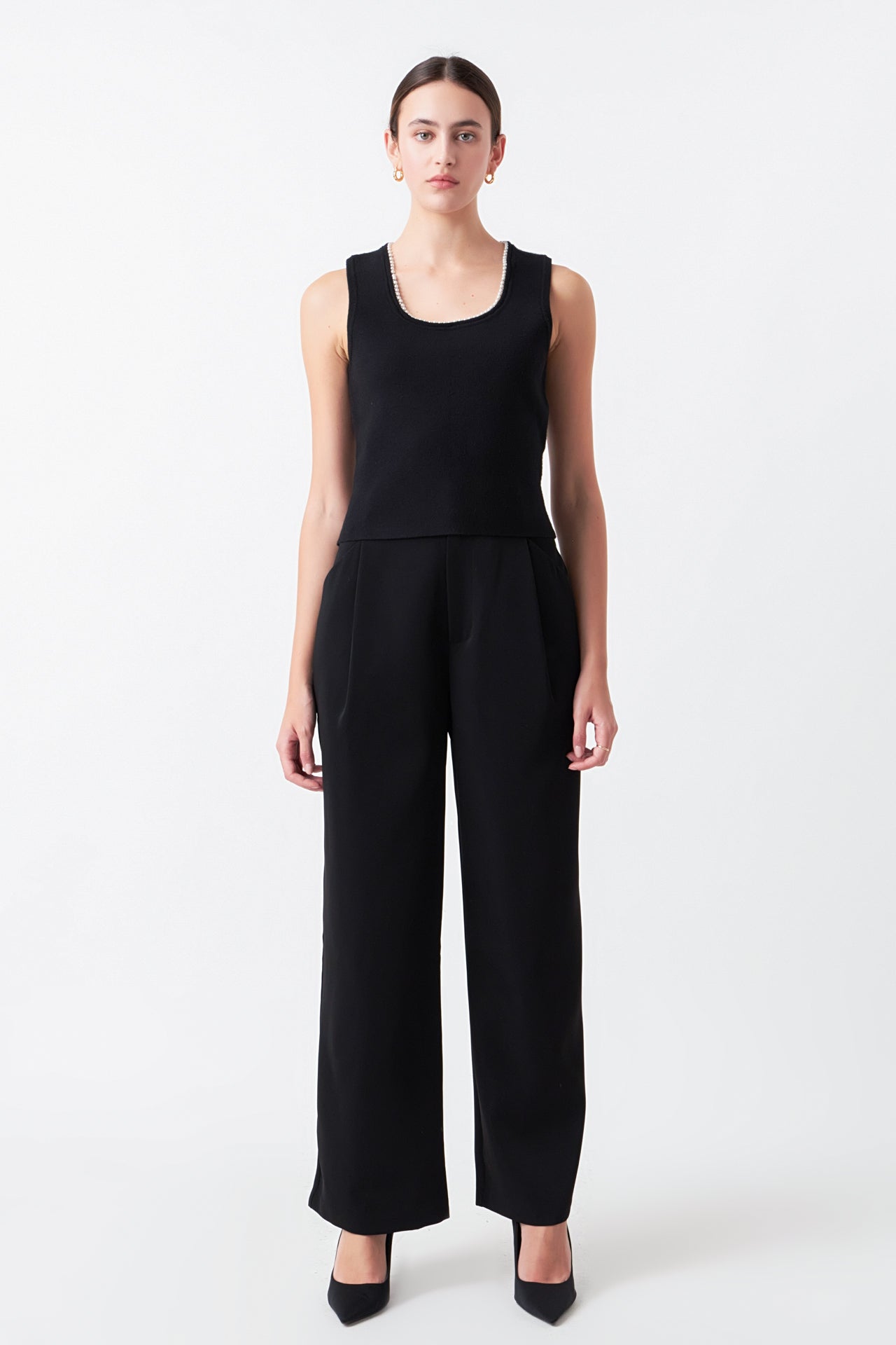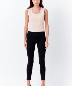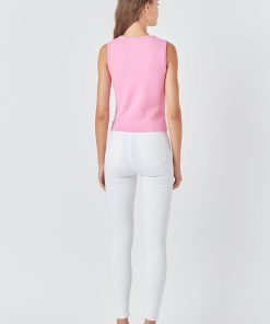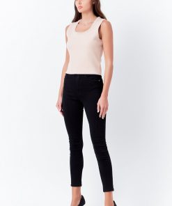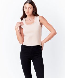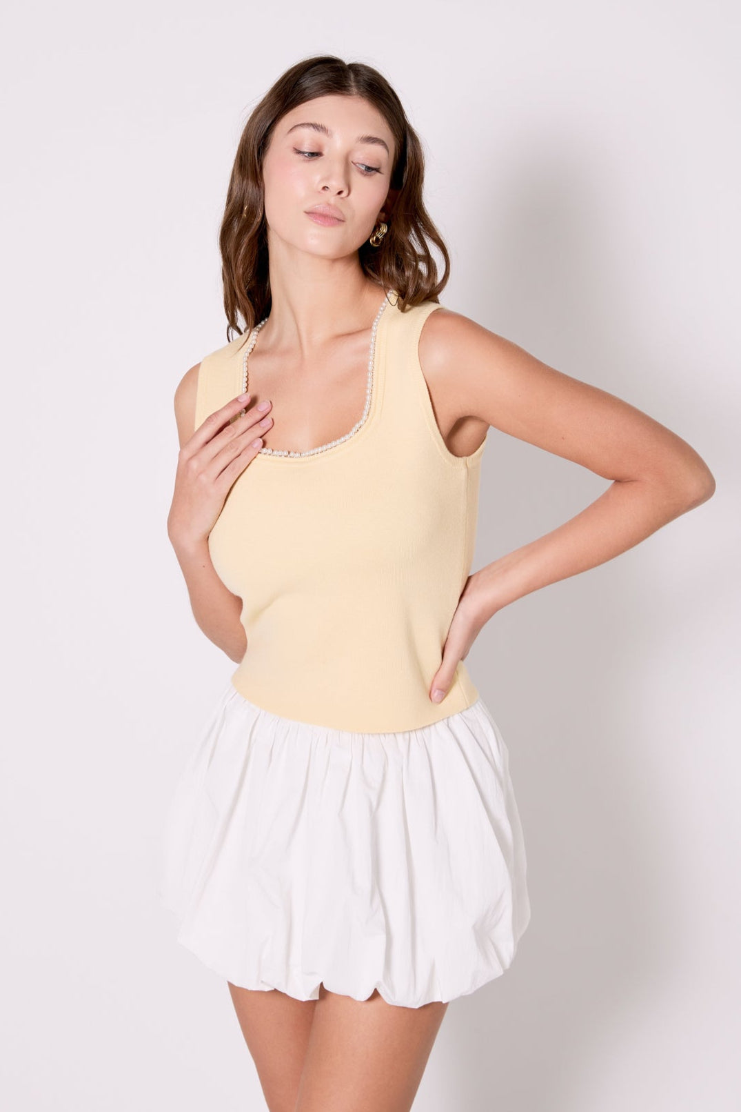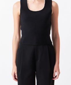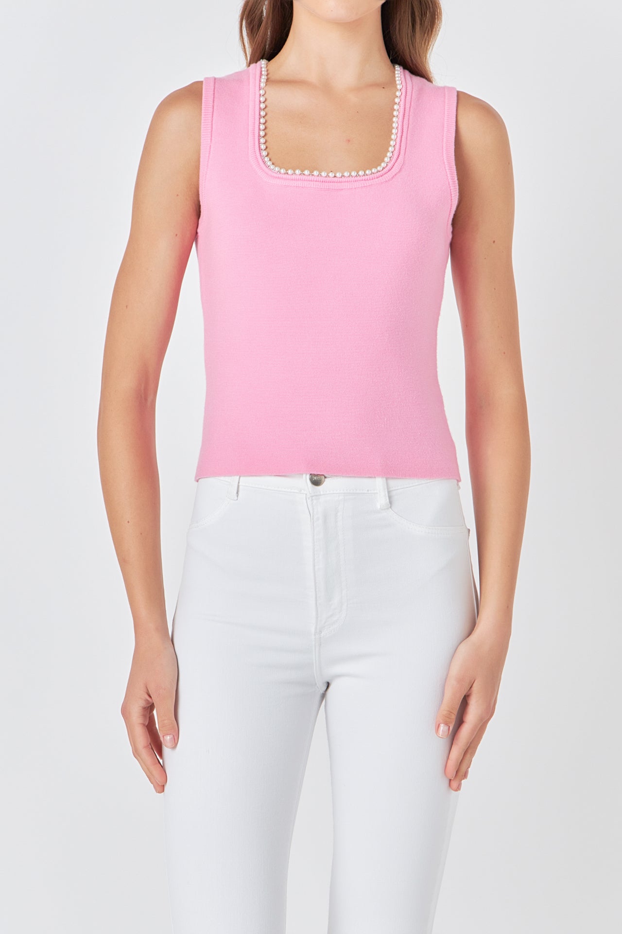Endless Rose Women’s Pearl Trim Knit Tank Top | Butter|taupe|pink|black