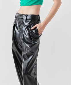 Upgrade your wardrobe basics with our Pleated PU Pants. Crafted in lightweight PU material with side pockets and a front pleat these trousers offer a straight fit for an eye-catching silhouette. The back welt pockets complete the look for a stylish finish. These pants are perfect for creating a modern look with a twist. Let your outfit do the talking when you wear our Pleated PU Pants.