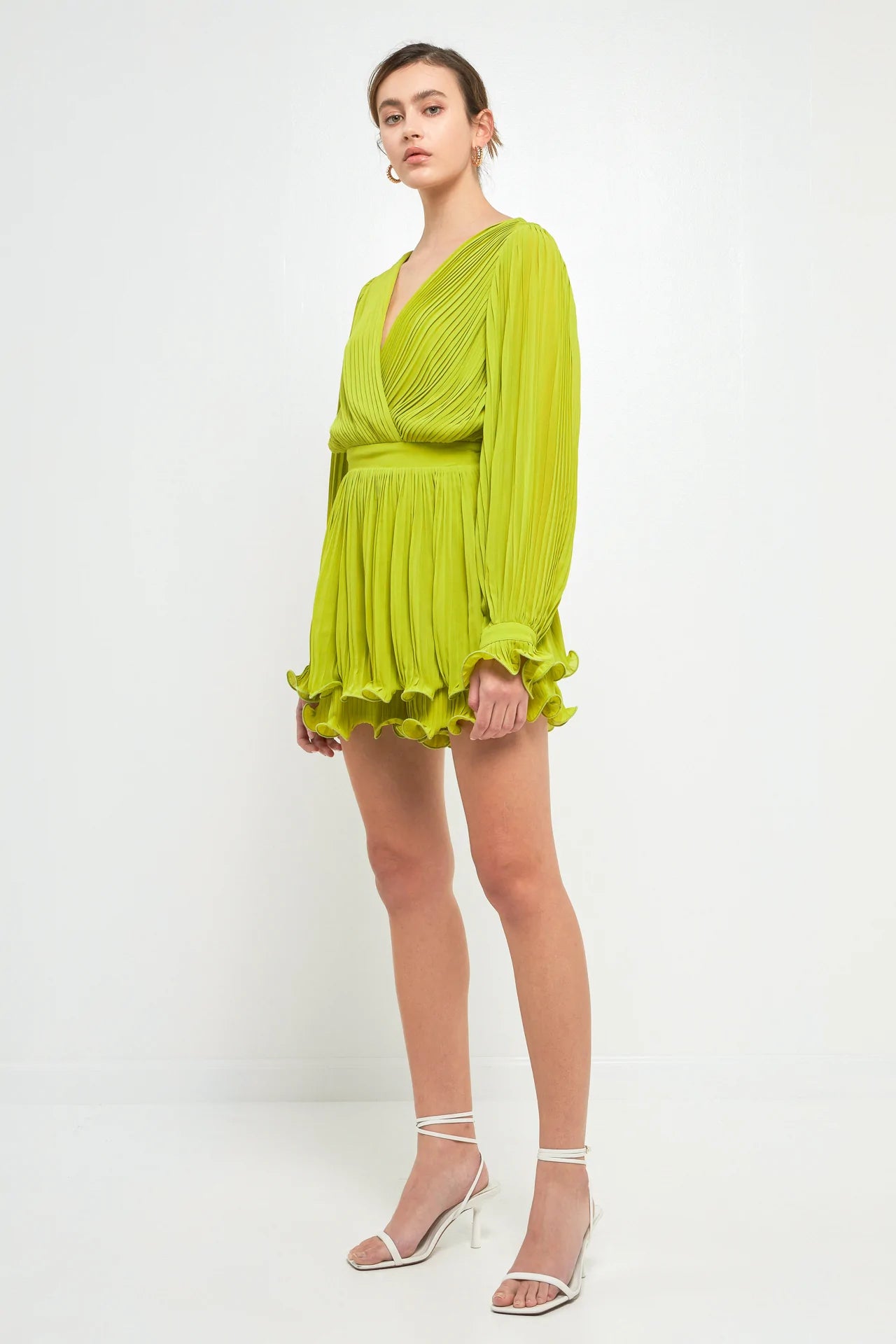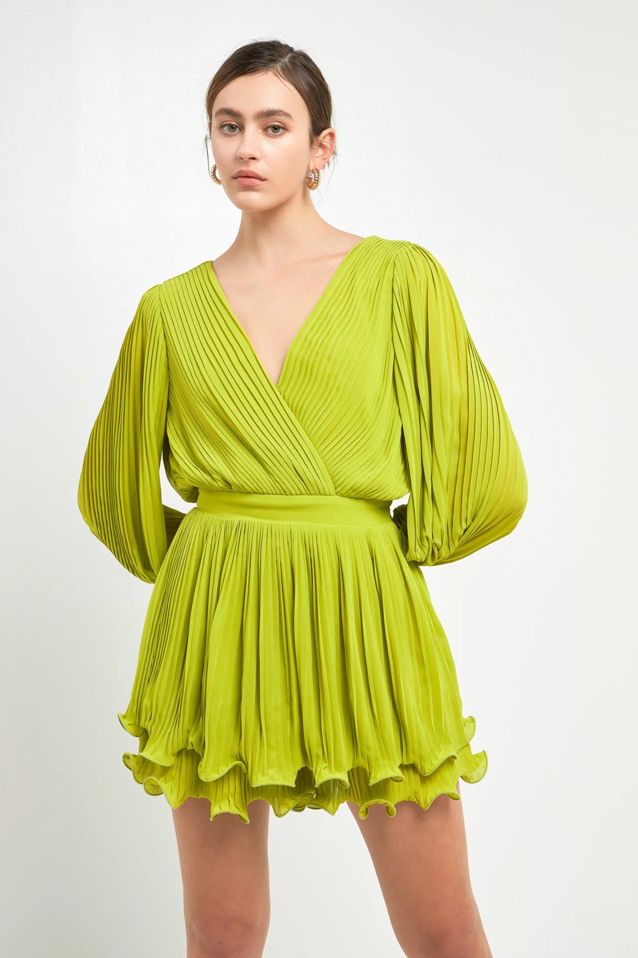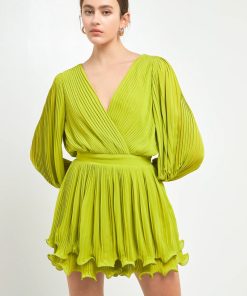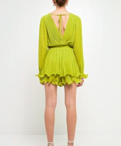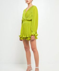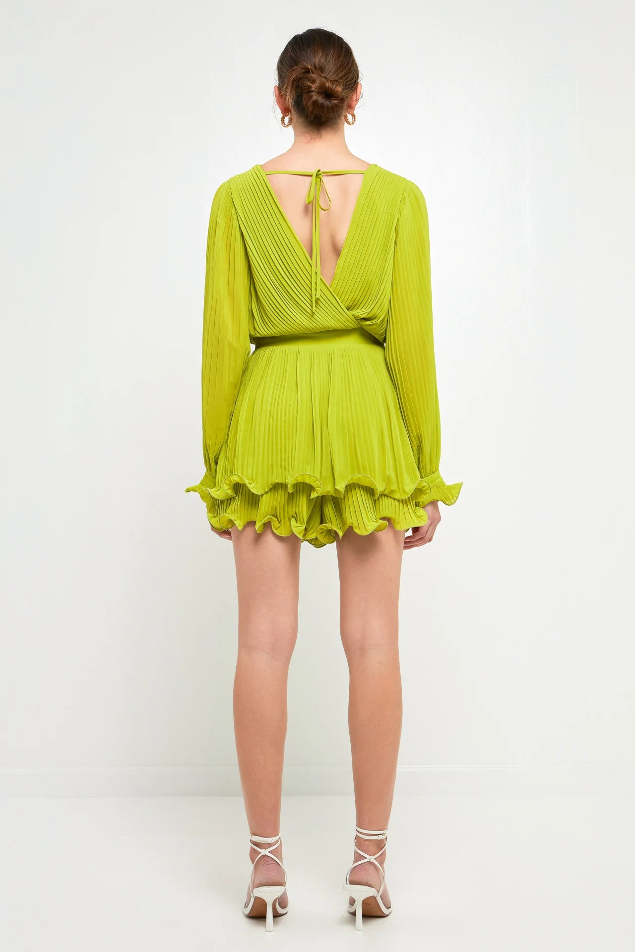 Endless Rose Women’s Pleated Long-sleeve Romper | Lime|fuchsia