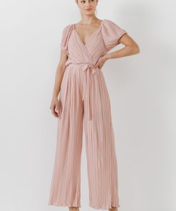 Endless Rose Women’s Pleated Surplice Jumpsuit | Dusty Pink