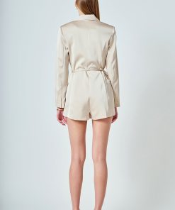 Look stunning in the Corsage Tie Romper. This unique romper is designed with blazer-style lapels a tailored fit and long sleeves. Show off your fashion sense with these chic shorts that will give you an unforgettable look. They emphasize the perfect curves while flaunting your beautiful figure making you the center of attention. Get ready to stand out with our Corsage Tie Romper.