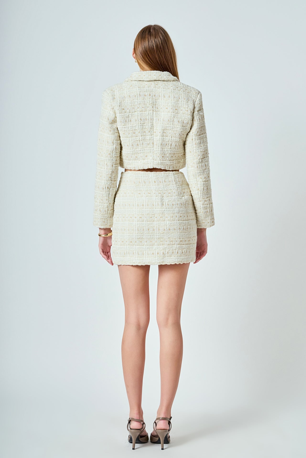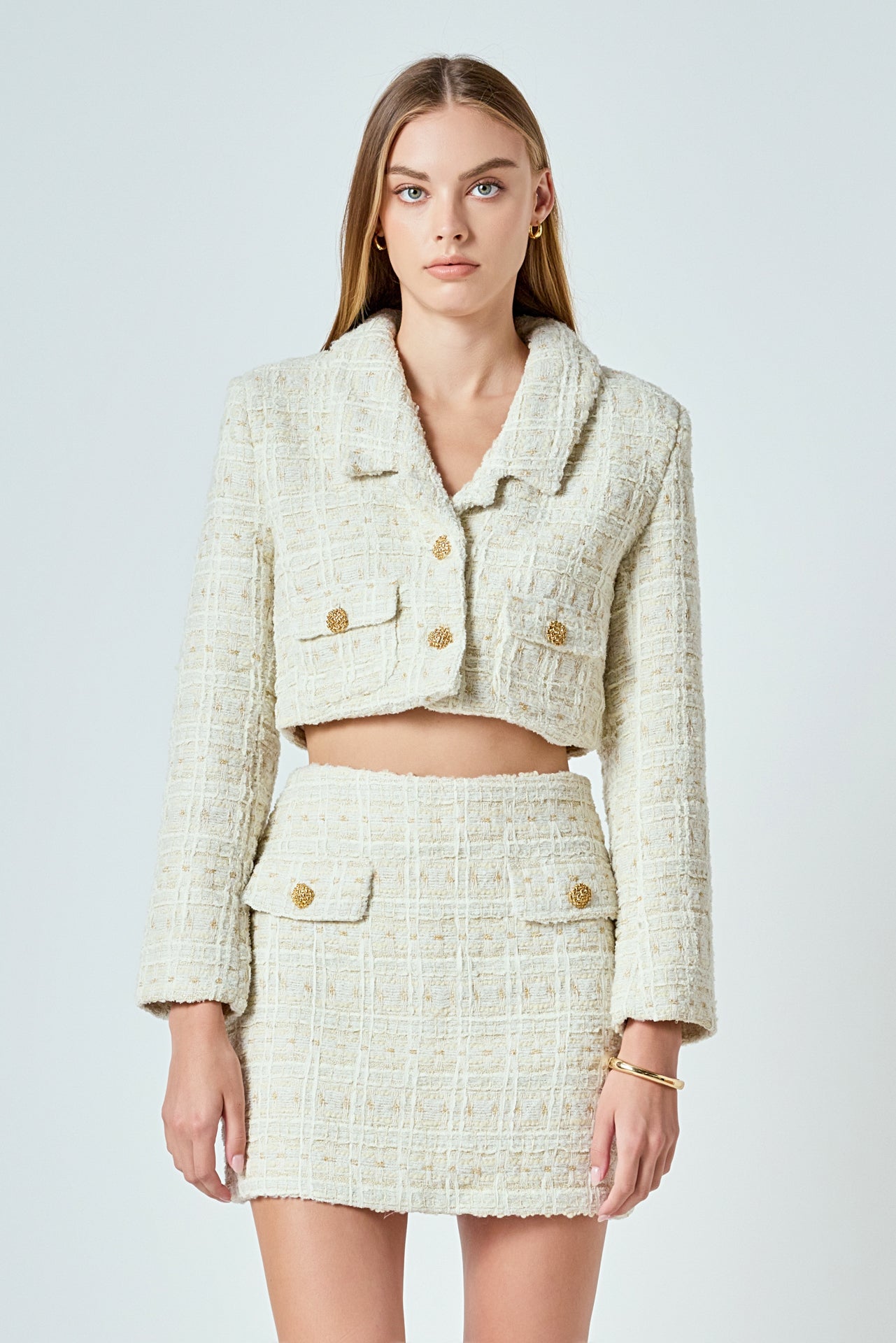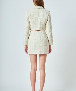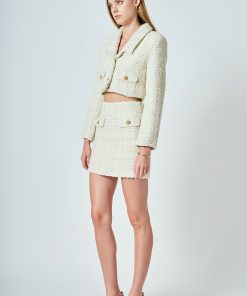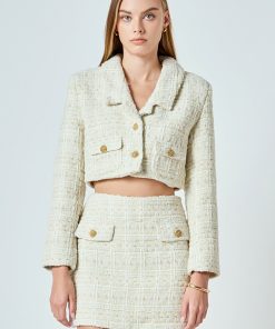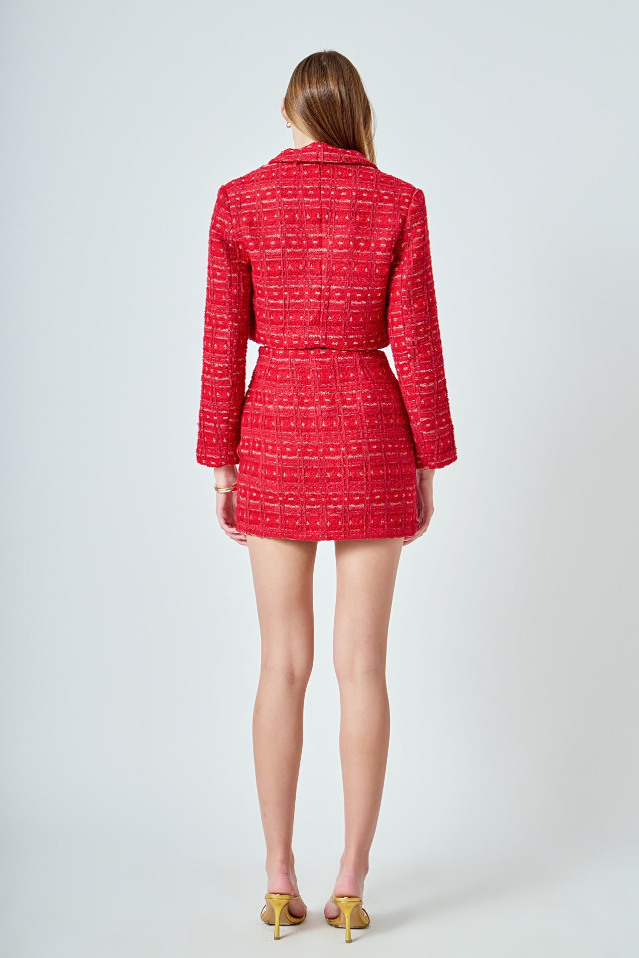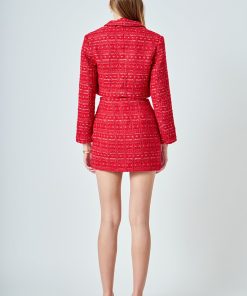 Endless Rose Women’s Premium Cropped Tweed Jacket | Red|ivory