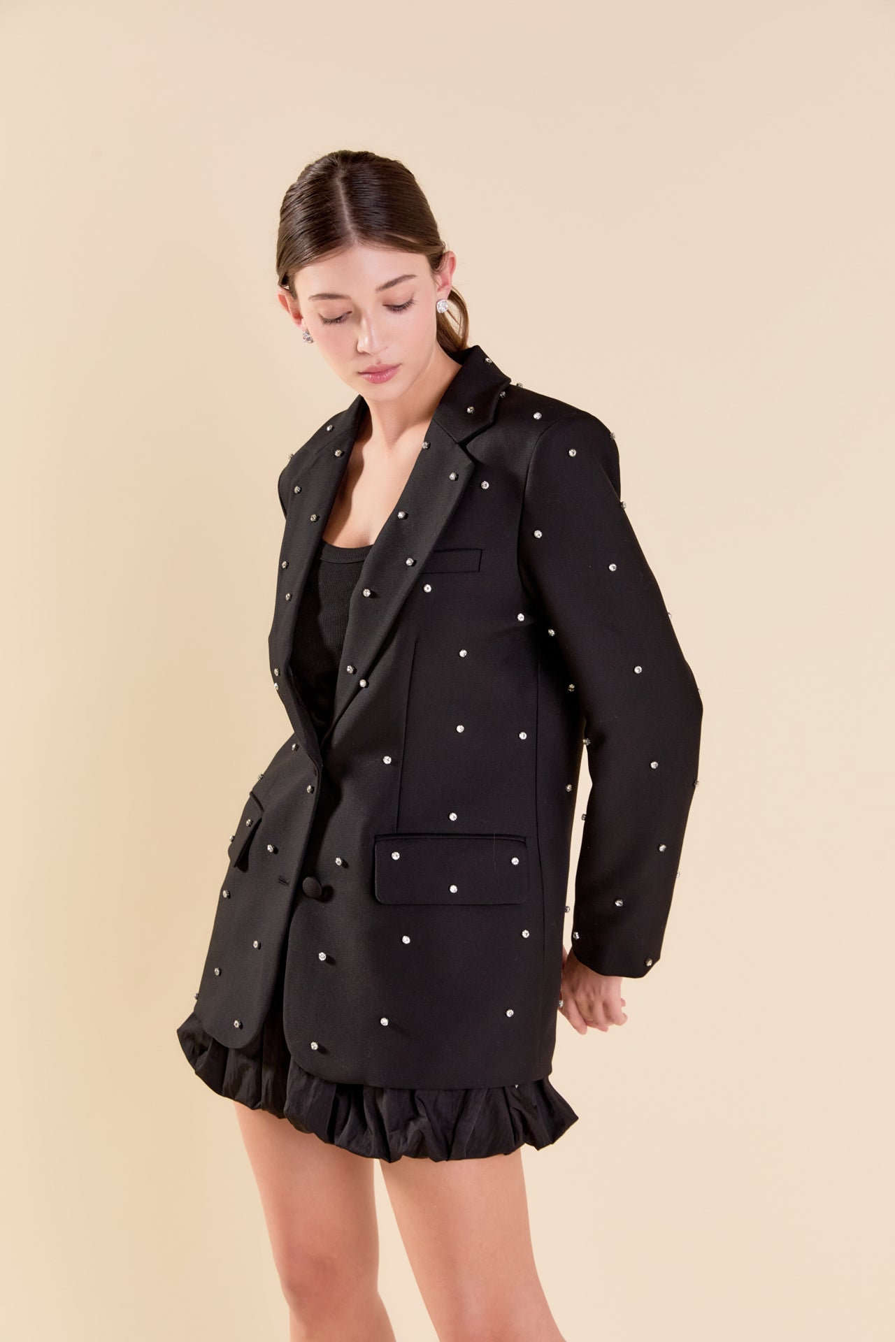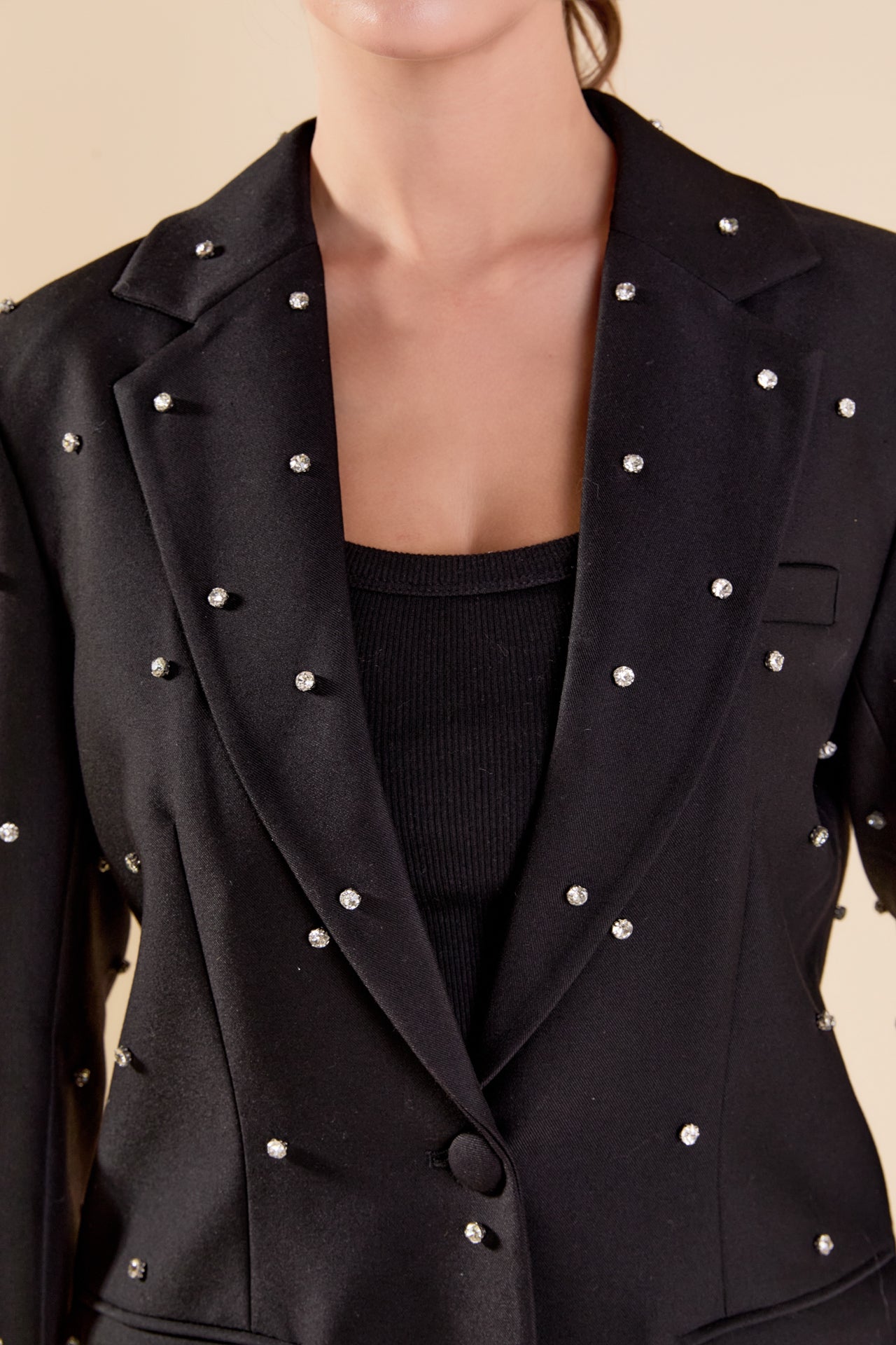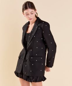 This Embellished Blazer is perfect for a night out or to amp up your everyday style. The regular fitting classic collar and lapel long sleeve and flap pocket give it a timeless structure while burnished gold adorned buttons and sequin detailing offer an extra shimmer. Upgrade your wardrobe with this glamorous blazer and turn heads.