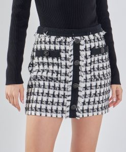 Hey ladies, it’s time to show off your style. Revamp your wardrobe with this mini skirt from endless rose – designed with a flattering high waist and fitted silhouette, plus accent jewel buttons for an extra touch of glamor. Whether dressed up or down, this tweed skirt with fringe detail will make any outfit stand out. Elevate your look with this statement piece.