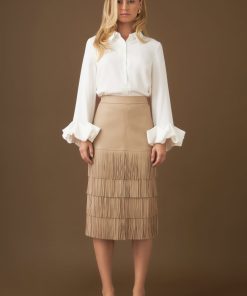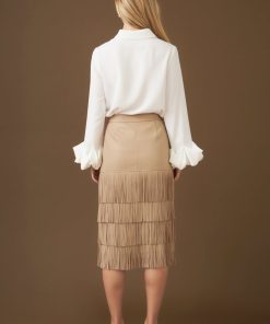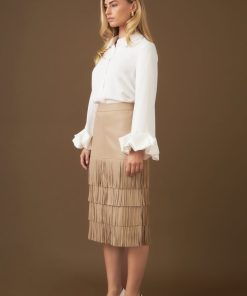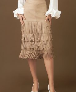 This Pu Fringe Midi Skirt is an absolute must-have for every fashionista’s wardrobe. Made from luxurious Pu fabric and featuring a waistband and fringe tiered design this stylish skirt is sure to become a staple in your wardrobe. The midi length provides an on-trend look that can be tailored to a variety of occasions. With its unique style and luxurious fabric this skirt is perfect for making a statement. Shop the must-have Pu Fringe Midi Skirt today and take your look to the next level.