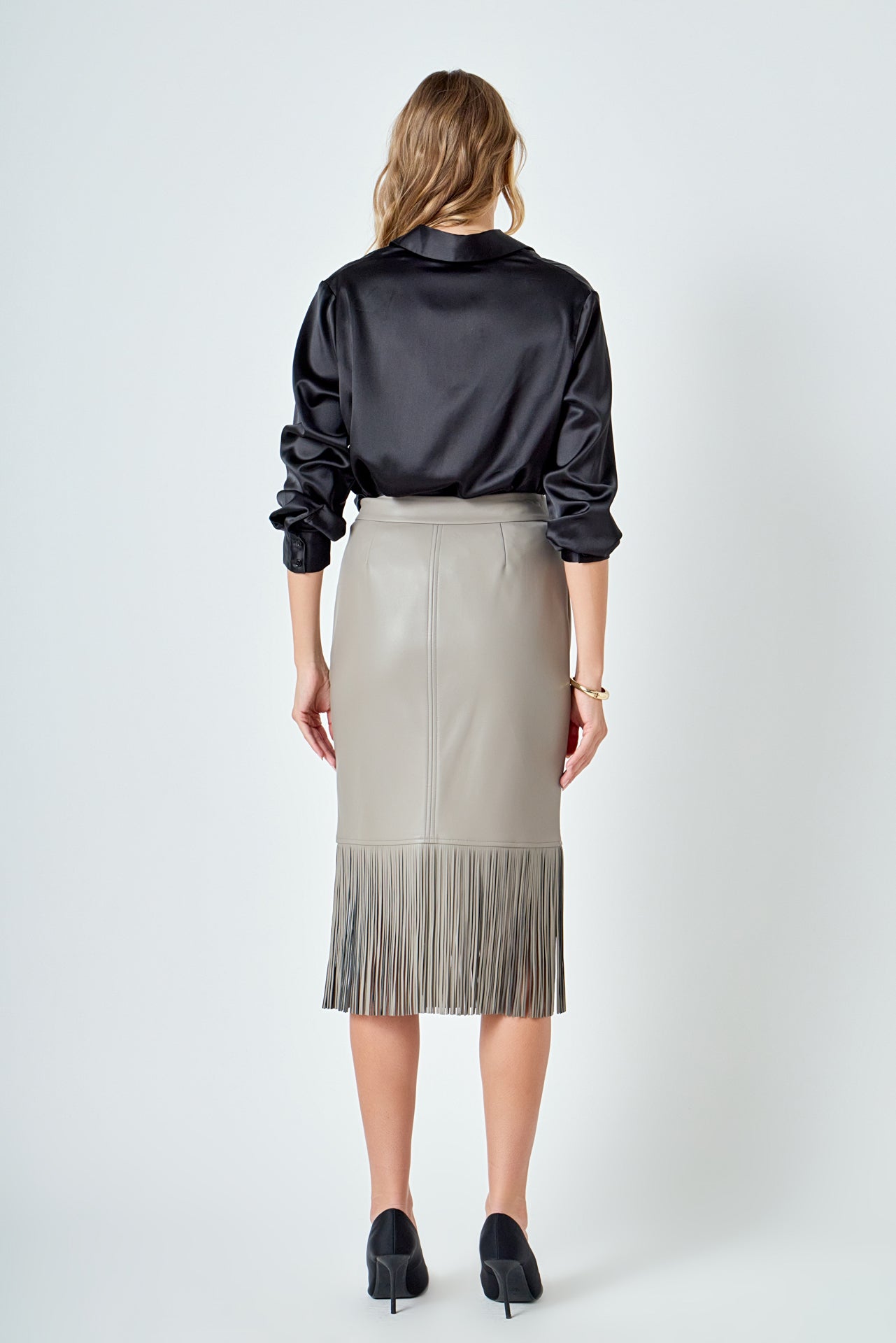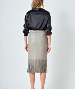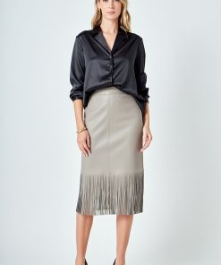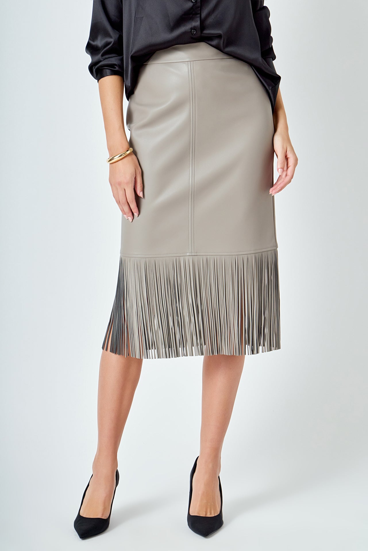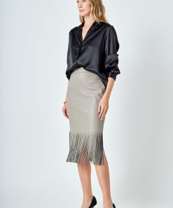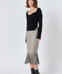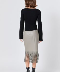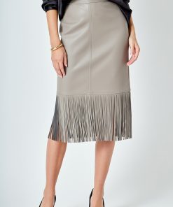 Endless Rose Women’s Pu Fringe Pencil Midi Skirt | Taupe