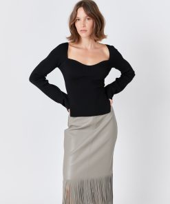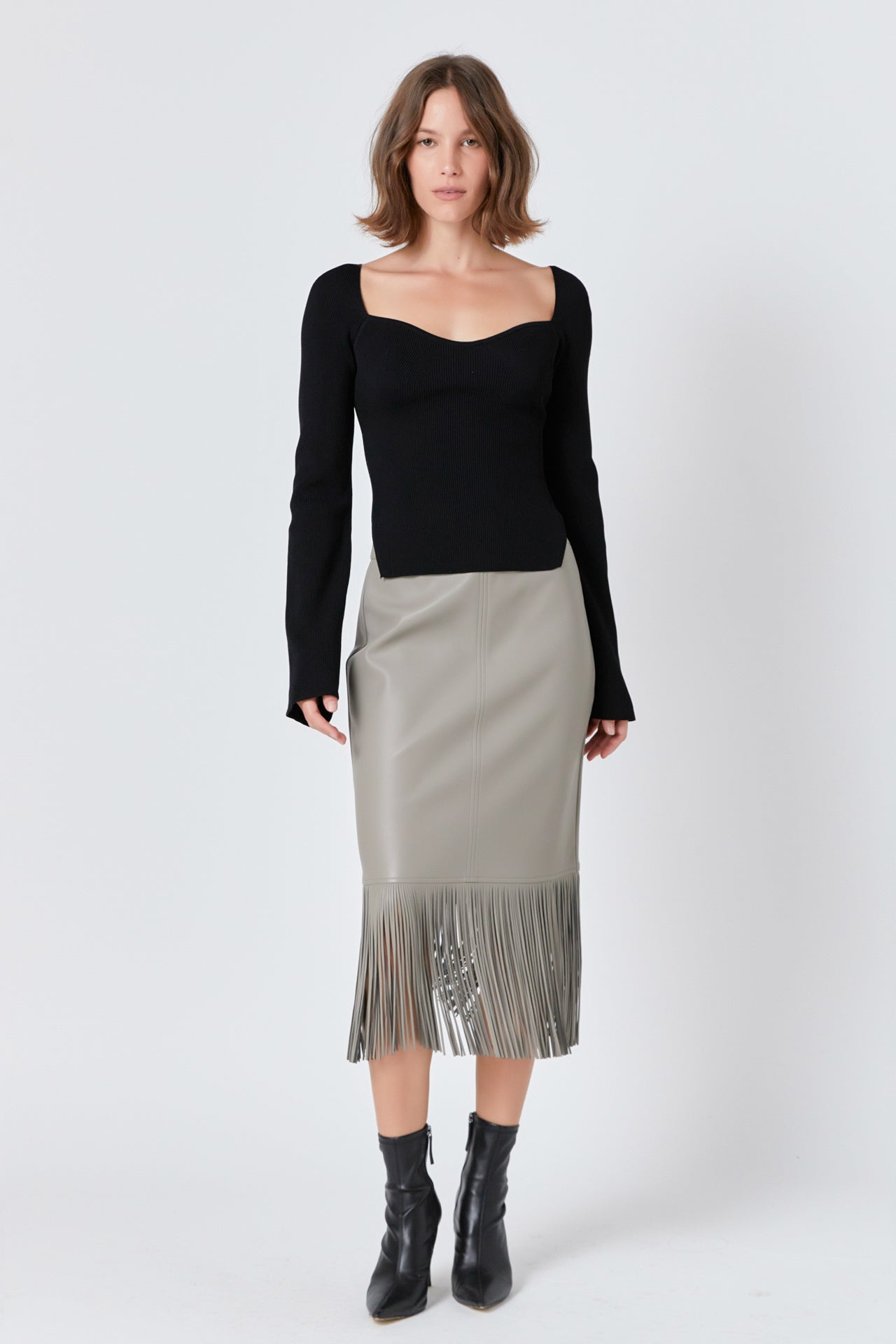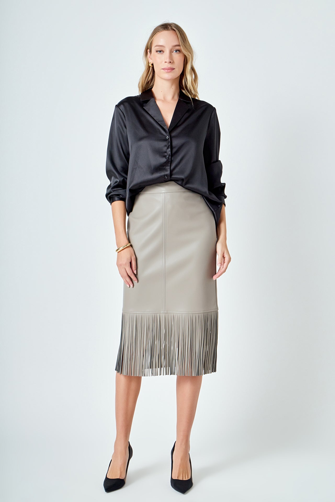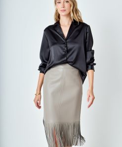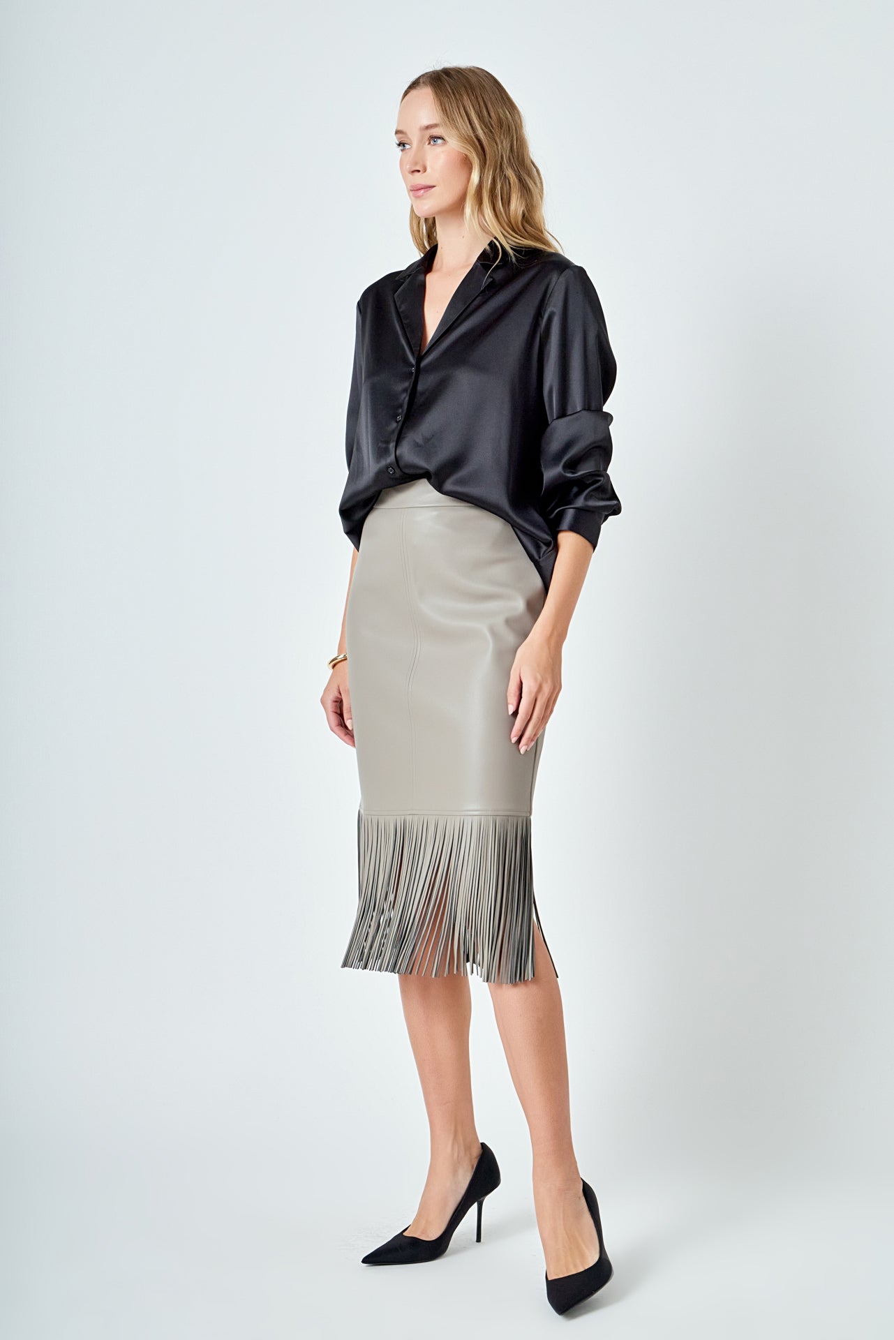 Endless Rose Women’s Pu Fringe Pencil Midi Skirt | Taupe