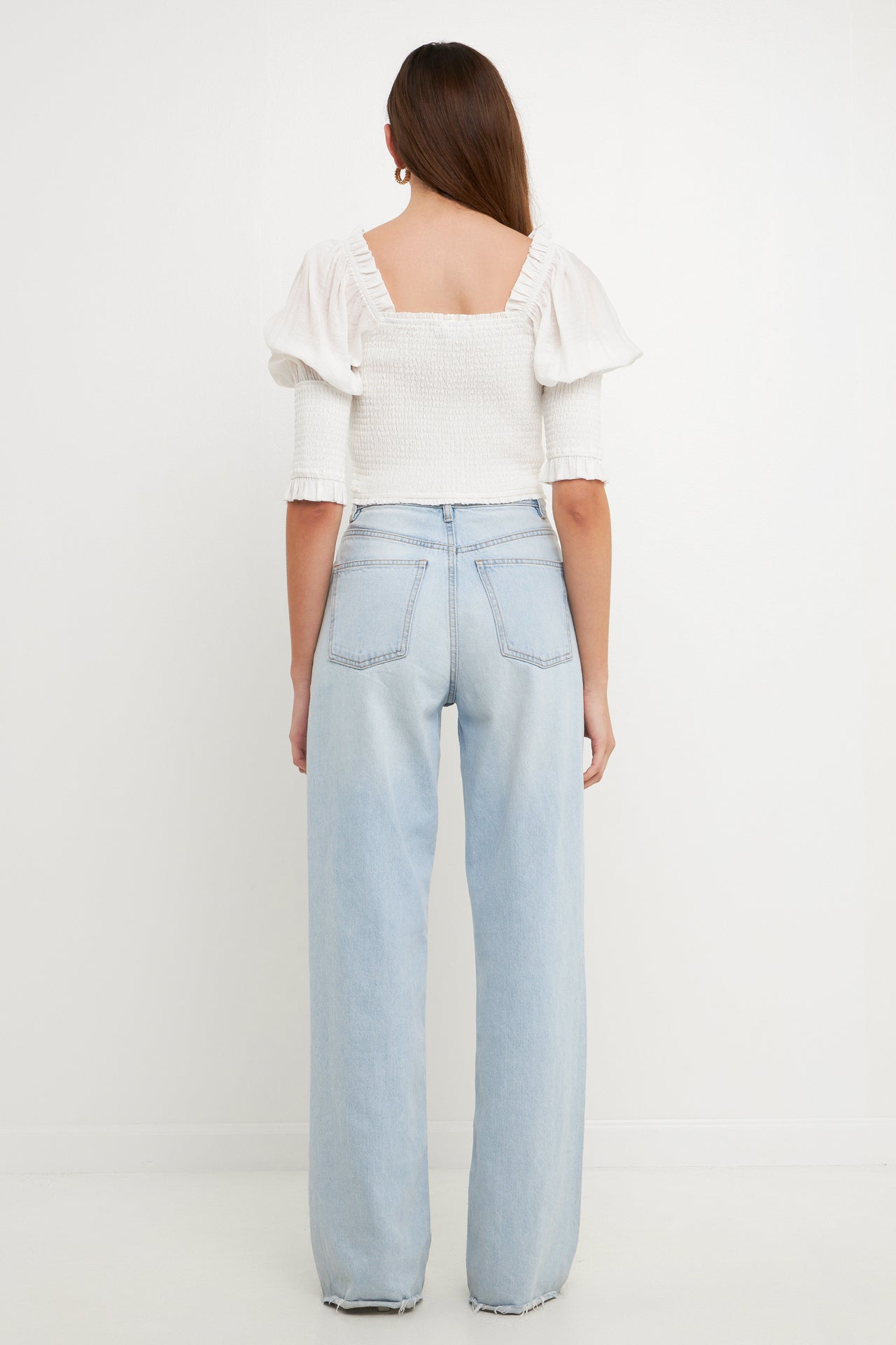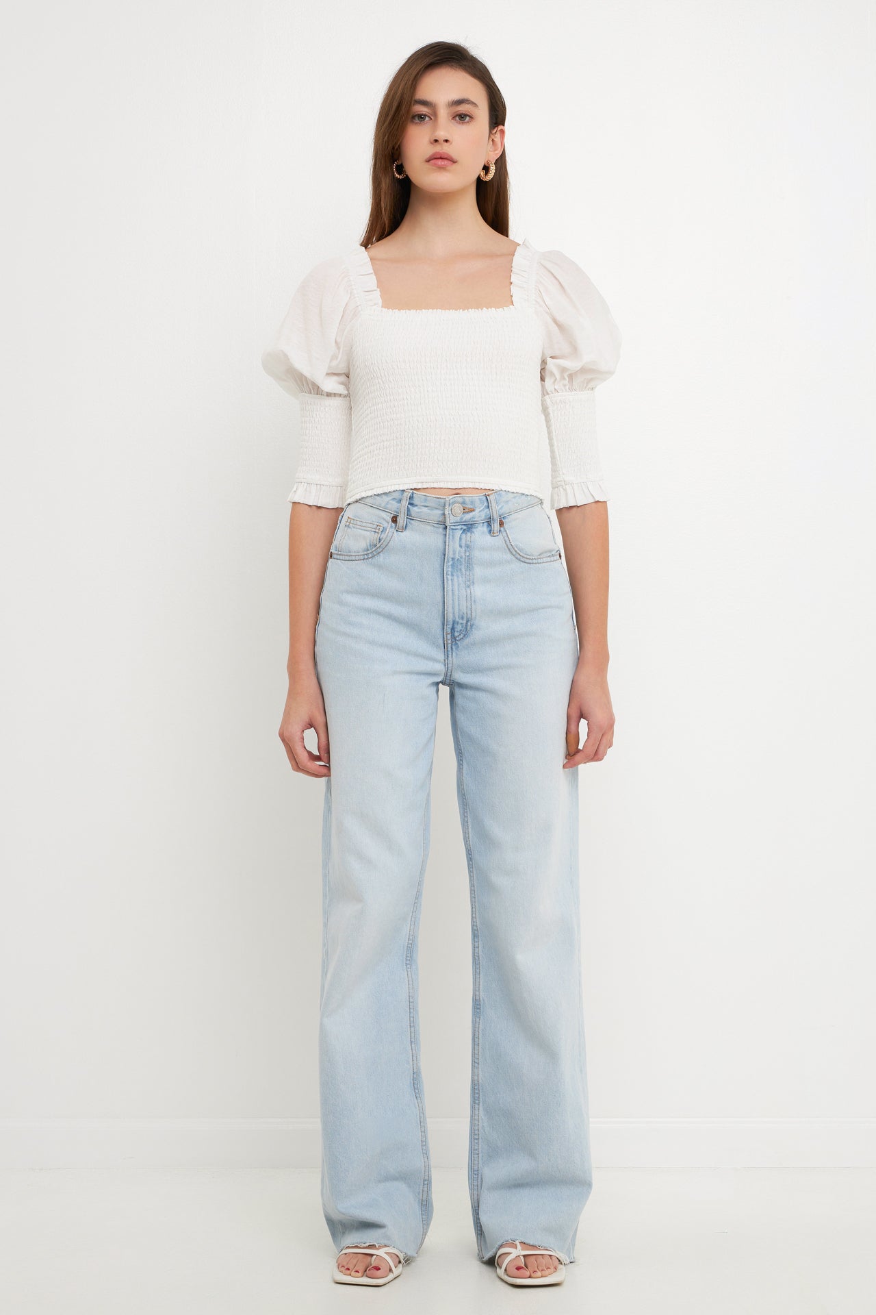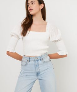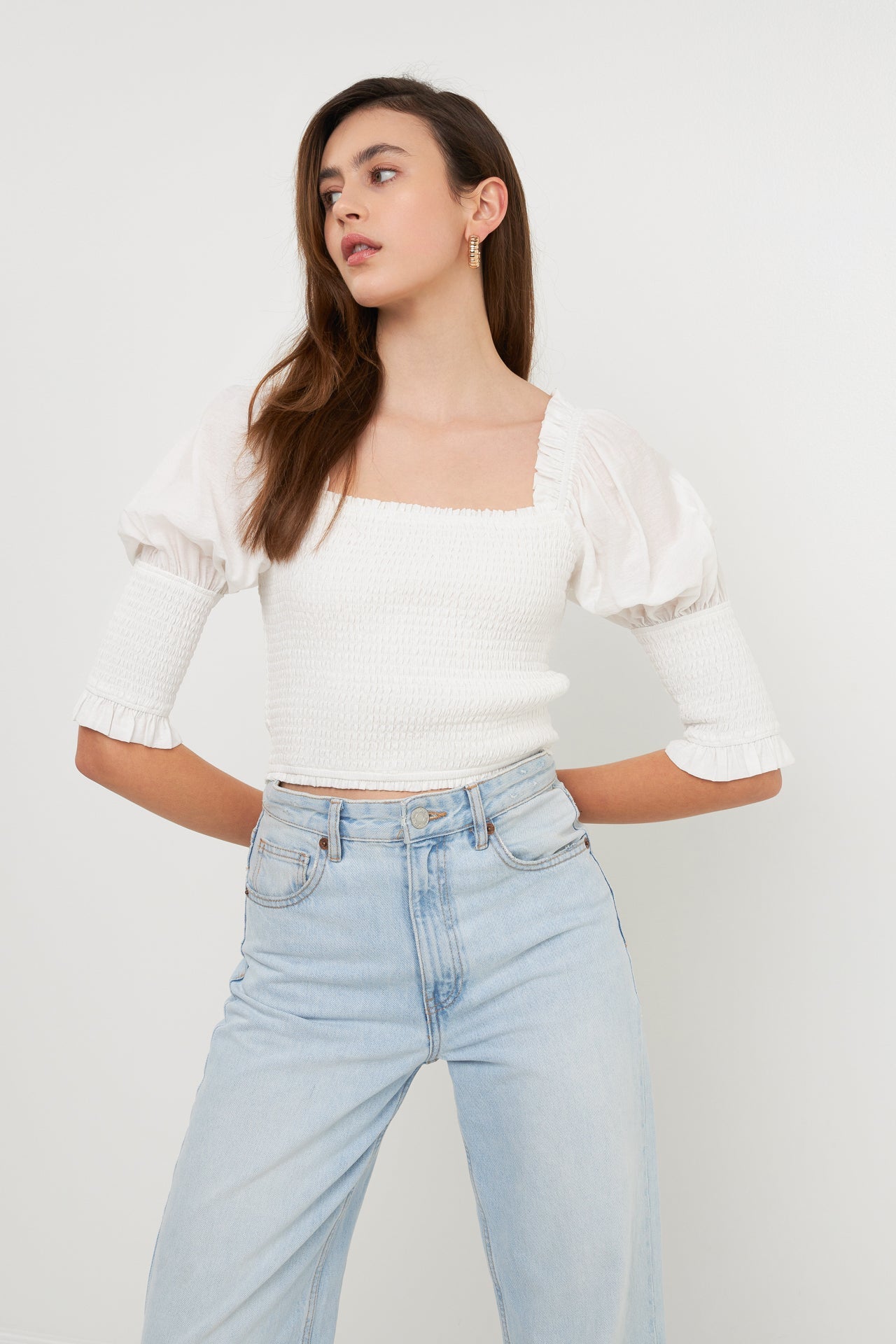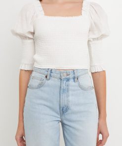 This Quarter Sleeve Smocked Puff Sleeve Top is the perfect addition to your wardrobe! It’s fitted, cute, and white – perfect for any occasion. Plus, the puff sleeves give it that added touch of style. Dress it up or down and wear it any time of year!