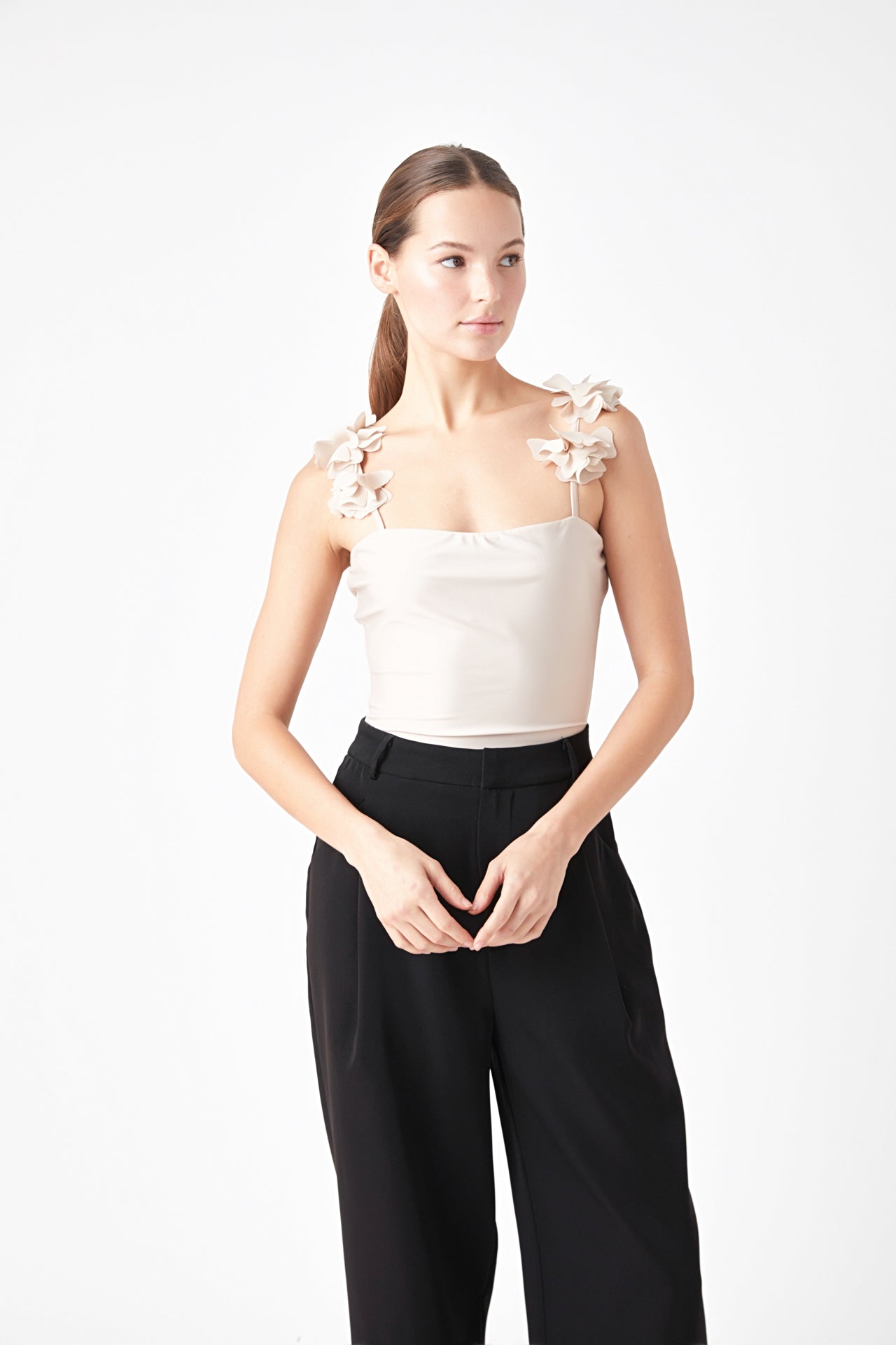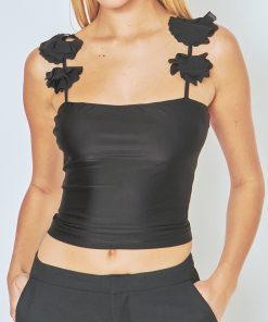 Introducing our must-have Rosette Shoulder Fitted Top for a sleek and stylish look. Crafted with a double layer self this top hugs your curves beautifully. The shoulder flower detail adds a touch of femininity to your outfit. Perfect for both casual and formal occasions this top is versatile and can be dressed up or down. Please note this top runs small so we recommend sizing up for the perfect fit. Upgrade your wardrobe with this unique and flattering top.