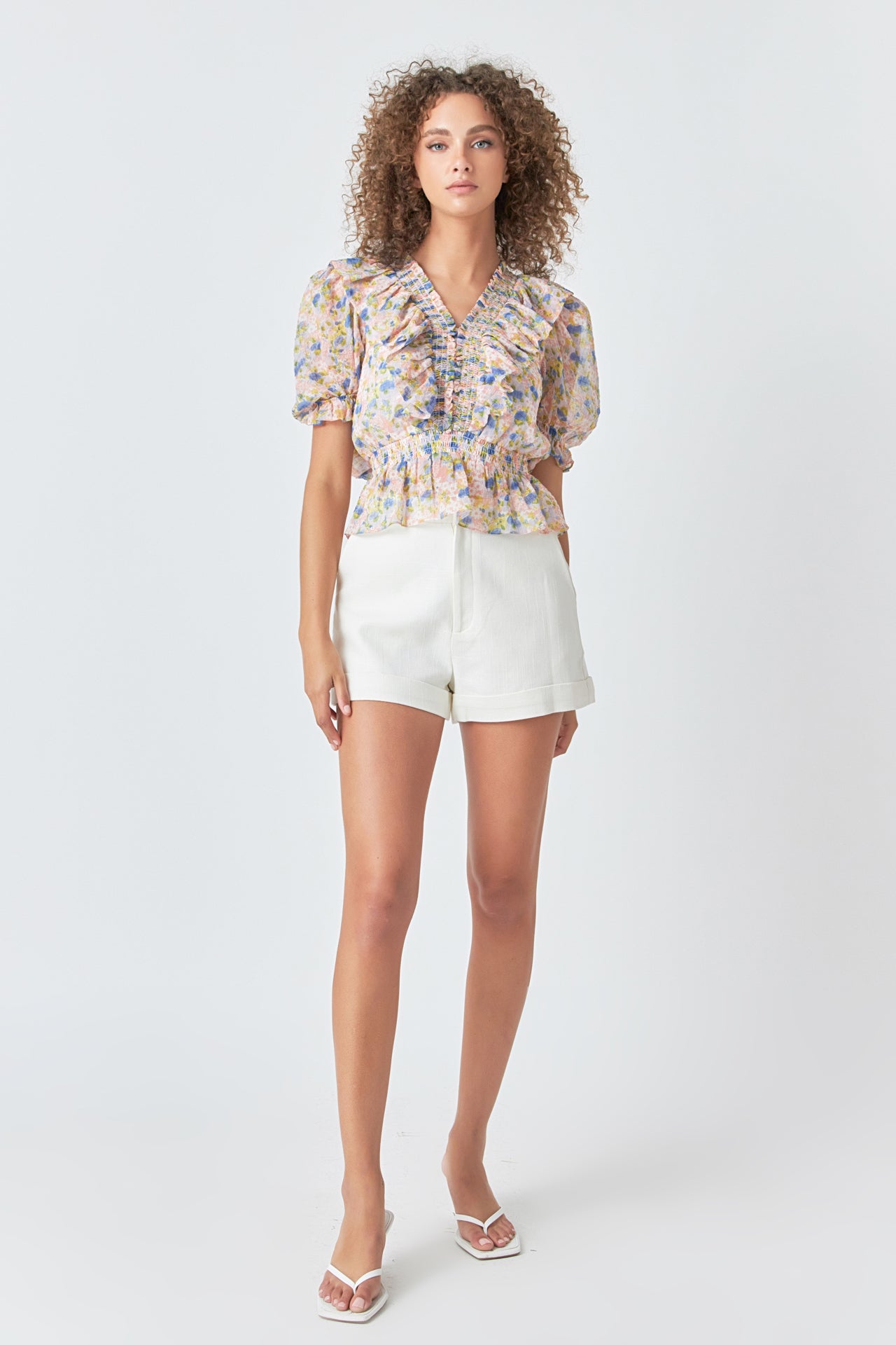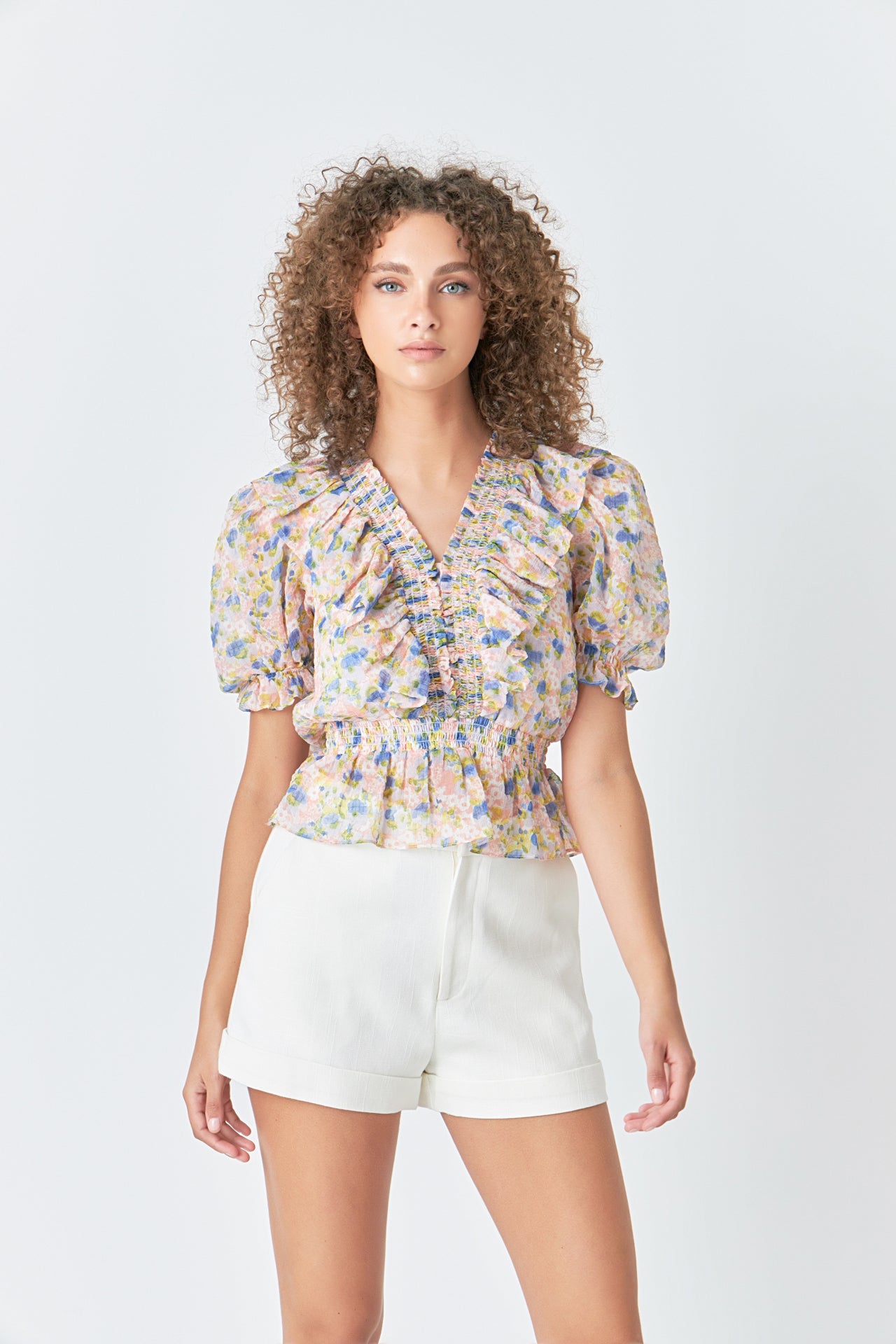 This top is perfect for dressing up or dressing down. With its versatile style, you can wear this top any time of the year. The ruffle bodice gives it a touch of femininity while the puff sleeves add a playful touch. Dress it up with a skirt and heels for a special occasion or keep it casual with jeans and flats. No matter how you style it, this top is sure to look great.