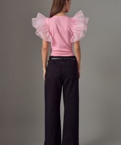 - Organza ruffled short sleeves