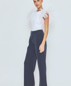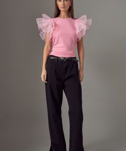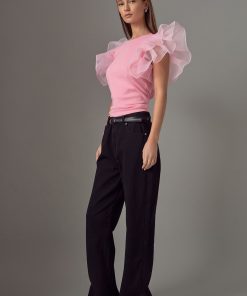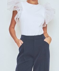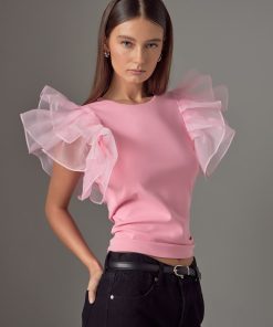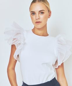 Upgrade your wardrobe with our stunning Ruffle Top! This must-have piece features a classy round neckline and eye-catching organza ruffled short sleeves for a feminine touch. The fitted bodice hugs your curves in all the right places, while the pull over design provides ultimate comfort. Perfect for any occasion, this top will take your outfit to the next level. Don’t miss out on this trendy and stylish top that is sure to turn heads. Shop now to elevate your style game!