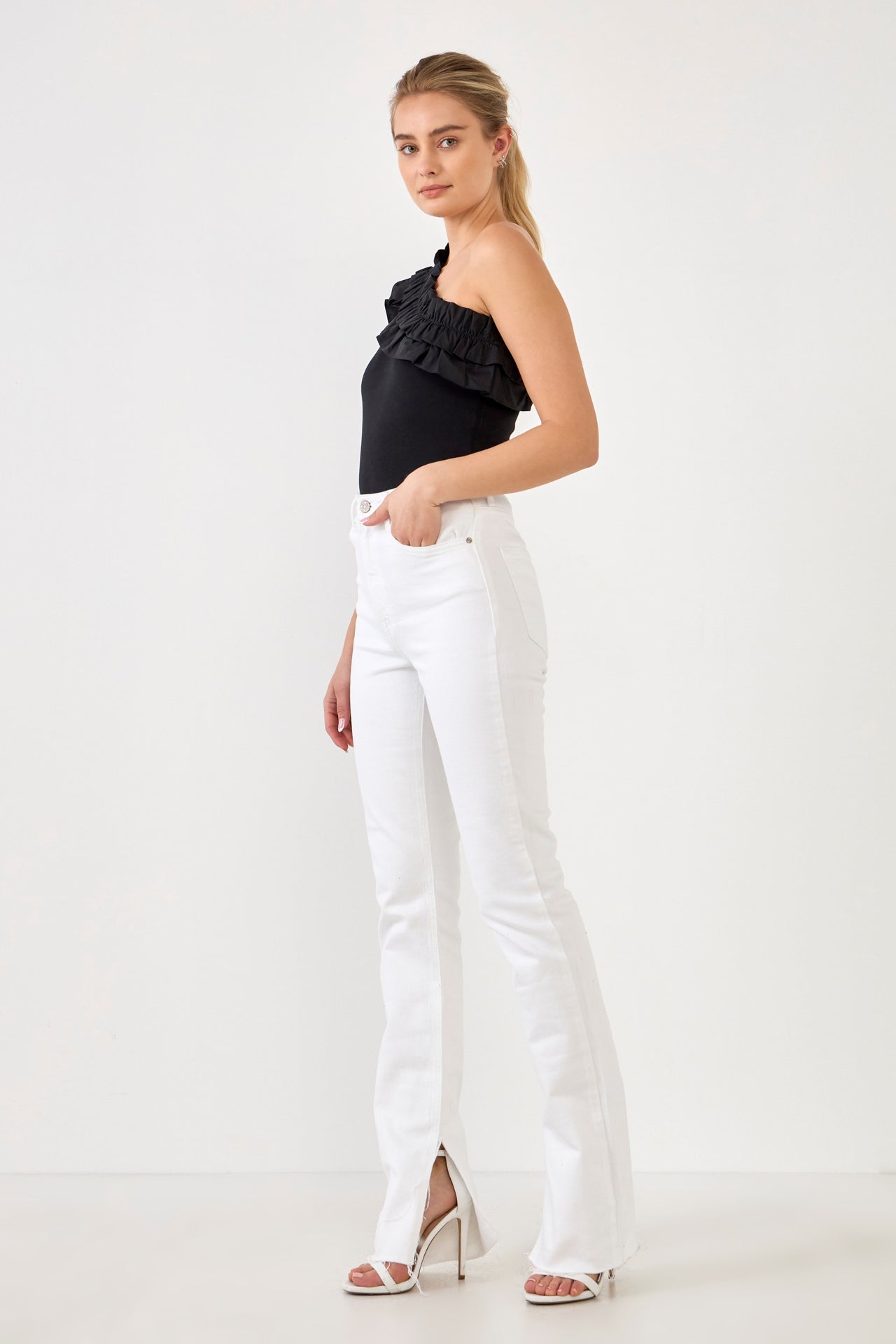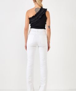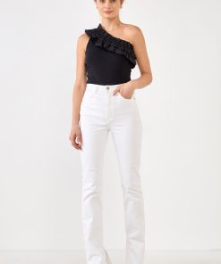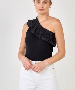 Looking for something a little different in a bodysuit? Our Ruffled Asymmetrical Bodysuit is perfect for you! This one-shouldered bodysuit features ruffle detail and a bottom snap button closure. It’s a unique and fun option for a night out or any special occasion.
