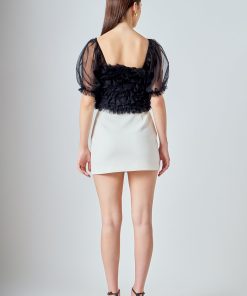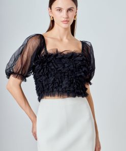 Endless Rose Women’s Ruffled Puff Sleeve Tulle Top | Black