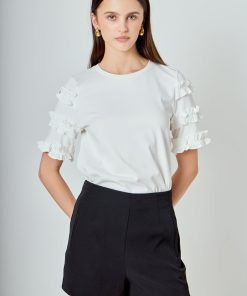 Introducing our must-have Ruffled Sleeve T-Shirt for the fashion-forward! Made with a soft knit fabric, this tee boasts a trendy ruffle contrast that’s perfect for elevating any outfit. The round neckline and short sleeves make it versatile for all seasons. Perfect for a day out or a casual night in, this top is a staple for any wardrobe. Grab yours now to add a touch of flair to your style. Stay ahead of the fashion game with our Ruffled Sleeve T-Shirt!