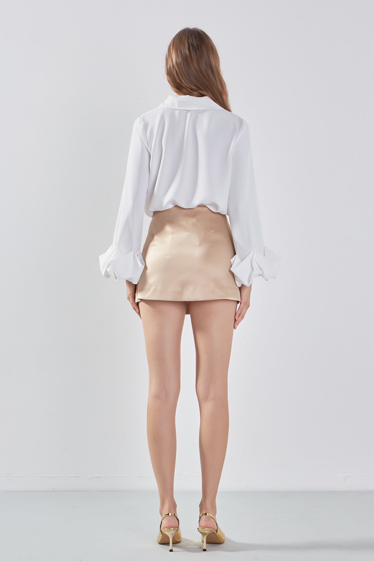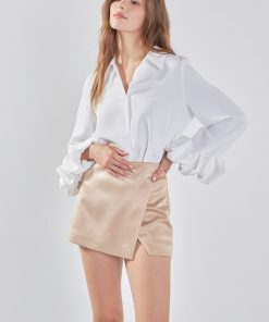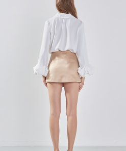 Upgrade your wardrobe with our Satin Asymmetric Skort. Made from luxurious stretch satin it offers both comfort and style. The midi rise and mini length create a flattering silhouette while the front wrap style adds a touch of sophistication. Perfect for any occasion whether it’s a night out or a day at the office. Get ready to turn heads and make a statement with our unique skort. Elevate your look and stand out from the crowd. Shop now and experience the ultimate combination of comfort and fashion.