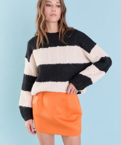 Endless Rose Women’s Satin Pintucked Mini Skirt | Orange|black